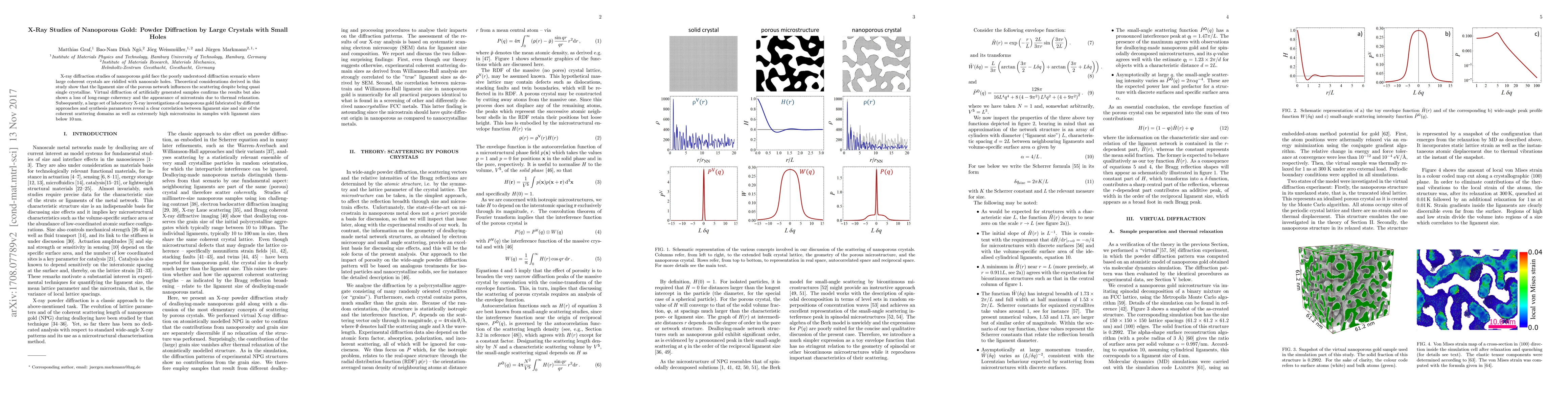 This study investigates the X-ray diffraction behavior of nanoporous gold, revealing that ligament size significantly influences scattering despite the quasi single-crystalline nature. Laboratory experiments confirm a correlation between ligament size and coherent scattering domains, with high microstrains observed in samples with ligaments below 10 nm.