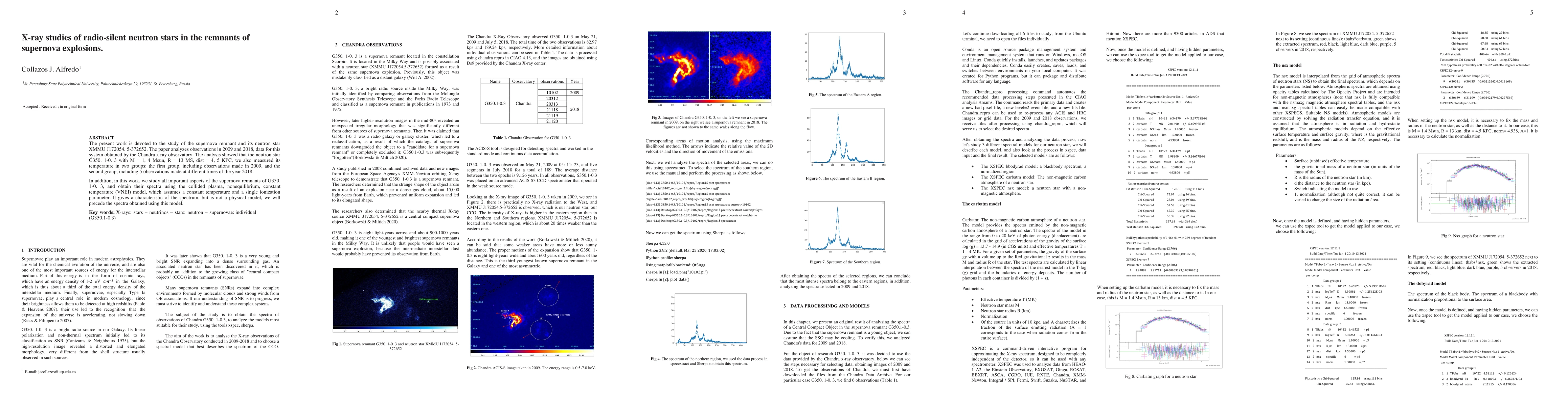 The present work is devoted to the study of the supernova remnant and its neutron star XMMU J172054. 5-372652. The paper analyzes observations in 2009 and 2018, data for this system obtained by the Chandra x ray observatory. The analysis showed that the neutron star G350. 1-0. 3 with M = 1, 4 Msun, R = 13 MS, dist = 4, 5 KPC, we also measured its temperature in two groups: the first group, including observations made in 2009, and the second group, including 5 observations made at different times of the year 2018. In addition, in this work, we study all important aspects of the supernova remnants of G350. 1-0. 3, and obtain their spectra using the collided plasma, nonequilibrium, constant temperature (VNEI) model, which assumes a constant temperature and a single ionization parameter. It gives a characteristic of the spectrum, but is not a physical model, we will precede the spectra obtained using this model.