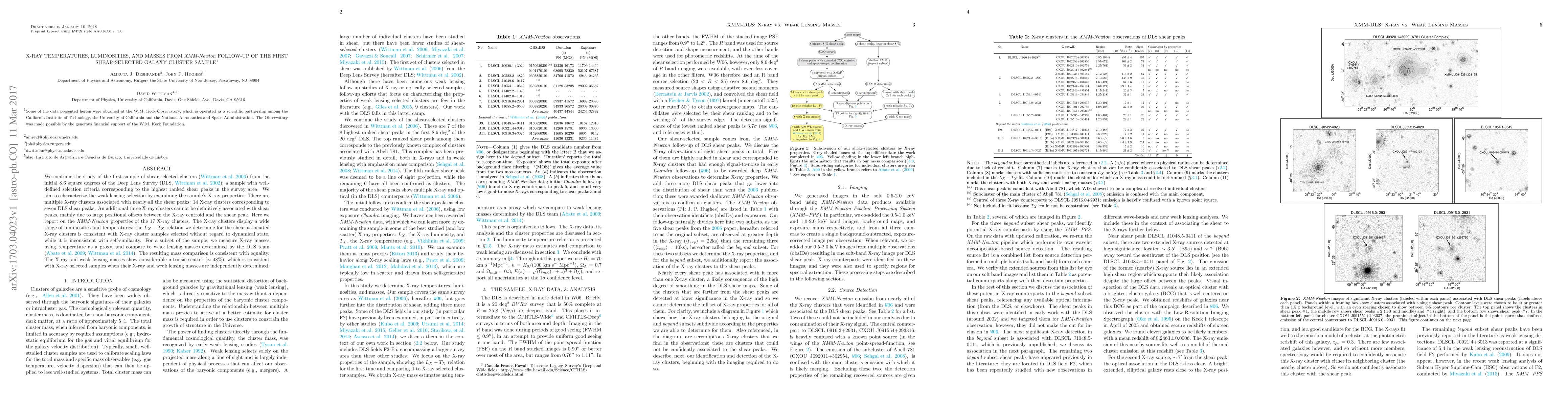 This study examines the X-ray properties of the first shear-selected galaxy cluster sample from the Deep Lens Survey, finding a wide range of luminosities and temperatures among the 17 associated X-ray clusters. The X-ray masses, derived using temperature as a proxy, are consistent with weak lensing masses, though both show significant intrinsic scatter (~48%).