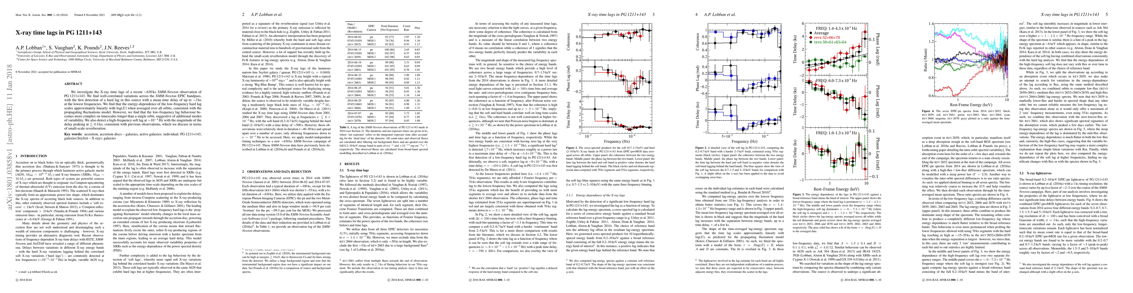 This study analyzes X-ray time lags from a 630ks XMM-Newton observation of PG 1211+143, revealing a hard lag with a mean delay of ~3ks at low frequencies, consistent with propagating fluctuations. Additionally, a high-frequency soft lag is detected at ~10^{-4}Hz, indicative of small-scale reverberation.