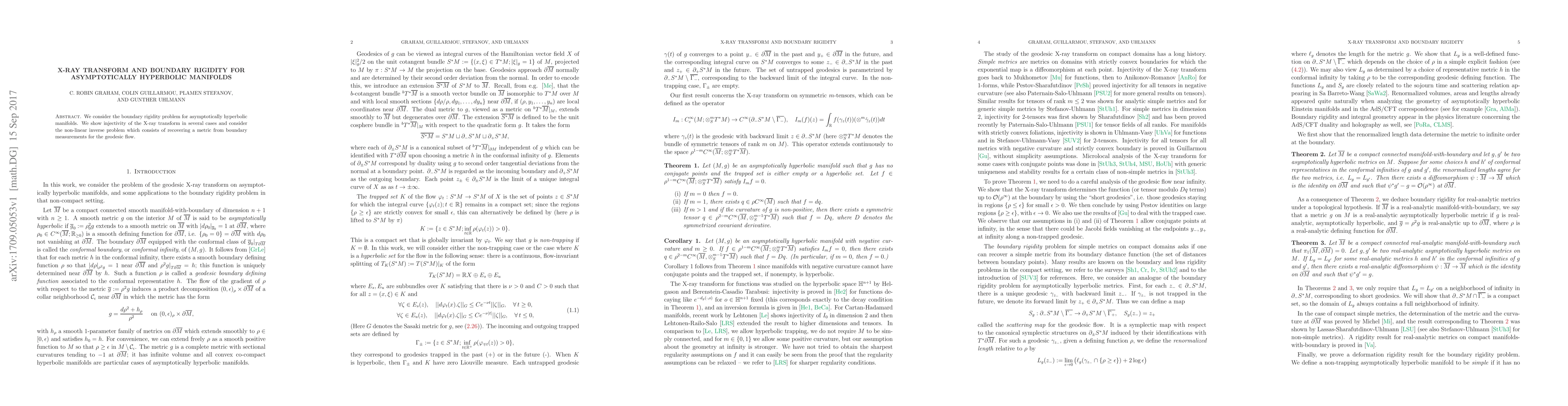 This paper investigates the boundary rigidity problem for asymptotically hyperbolic manifolds, demonstrating the injectivity of the X-ray transform in various scenarios and addressing the non-linear inverse problem of reconstructing a metric from boundary measurements of the geodesic flow.