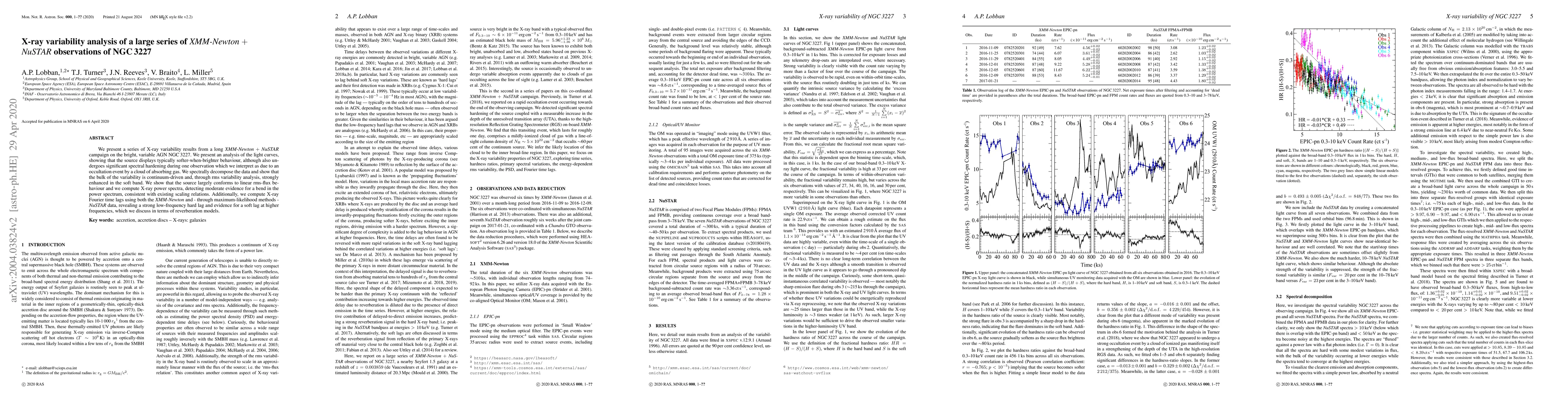 This paper analyzes X-ray variability from XMM-Newton and NuSTAR observations of NGC 3227, revealing softer-when-brighter behavior and significant spectral hardening due to an occultation event. The study finds continuum-driven variability, a bend in the X-ray power spectrum, and time lags consistent with reverberation models.