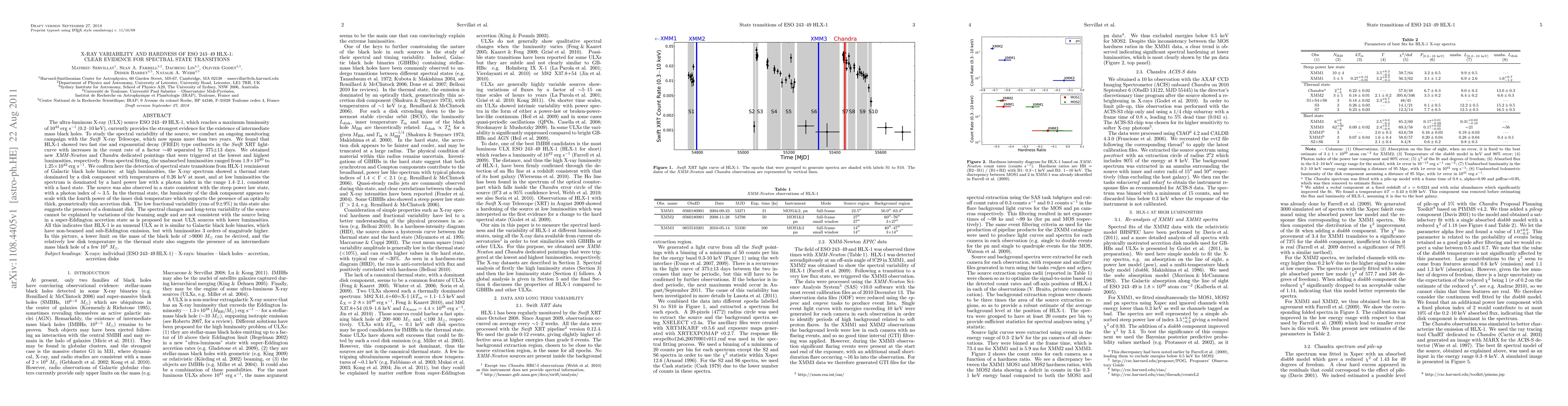 The ultra-luminous X-ray (ULX) source ESO 243-49 HLX-1 currently provides the strongest evidence for the existence of intermediate mass black holes. We conduct an ongoing monitoring campaign with the Swift X-ray Telescope and found that HLX-1 showed two fast rise and exponential decay with increases in the count rate of a factor ~40 separated by 375+/-13 days. We obtained new XMM-Newton and Chandra dedicated pointings that were triggered at the lowest and highest luminosities, respectively. The unabsorbed luminosities ranged from 1.9x10^40 to 1.25x10^42 erg/s. We confirm here the detection of spectral state transitions from HLX-1 reminiscent of Galactic black hole binaries: at high luminosities, the X-ray spectrum showed a thermal state dominated by a disk component with temperatures of 0.26 keV at most, and at low luminosities the spectrum is dominated by a hard power law with a photon index in the range 1.4-2.1, consistent with a hard state. The source was also observed in a steep power law state. In the thermal state, the luminosity of the disk component appears to scale with the fourth power of the inner disk temperature which supports the presence of an optically thick, geometrically thin accretion disk. The low fractional variability (rms of 9+/-9%) in this state also suggests the presence of a dominant disk. The spectral changes and long-term variability of the source cannot be explained by variations of the beaming angle and are not consistent with the source being in a super-Eddington accretion state. HLX-1 is thus an unusual ULX as it is similar to Galactic black hole binaries, which have non-beamed and sub-Eddington emission, but with luminosities 3 orders of magnitude higher. In this picture, a lower limit on the mass of the black hole of >9000 M_sun can be derived, and the disk temperature in the thermal state also suggests the presence of a black hole of a few 10^3 M_sun.