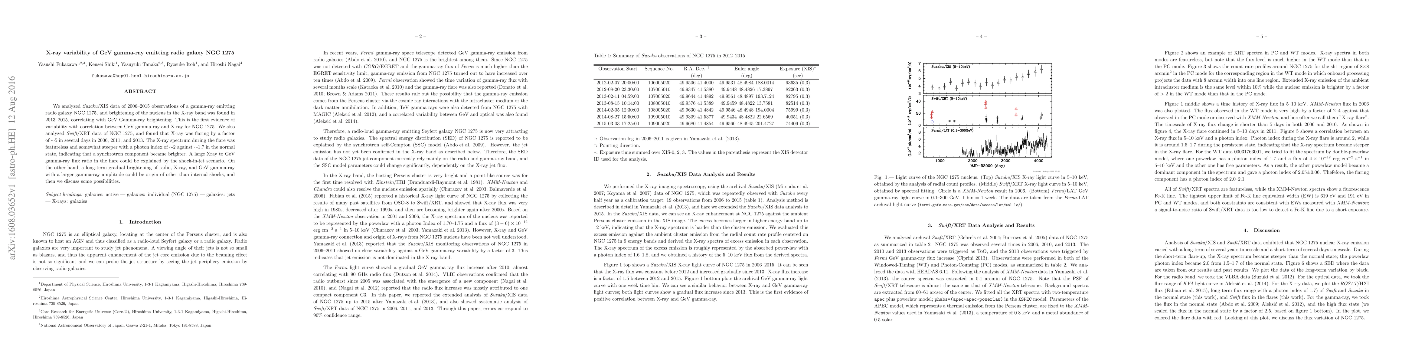 This paper reports on X-ray variability in NGC 1275, revealing a correlation between GeV gamma-ray and X-ray brightening in 2013-2015, and identifies short-term X-ray flares with a synchrotron component increase. The study discusses potential mechanisms for the observed variability, including the shock-in-jet scenario.