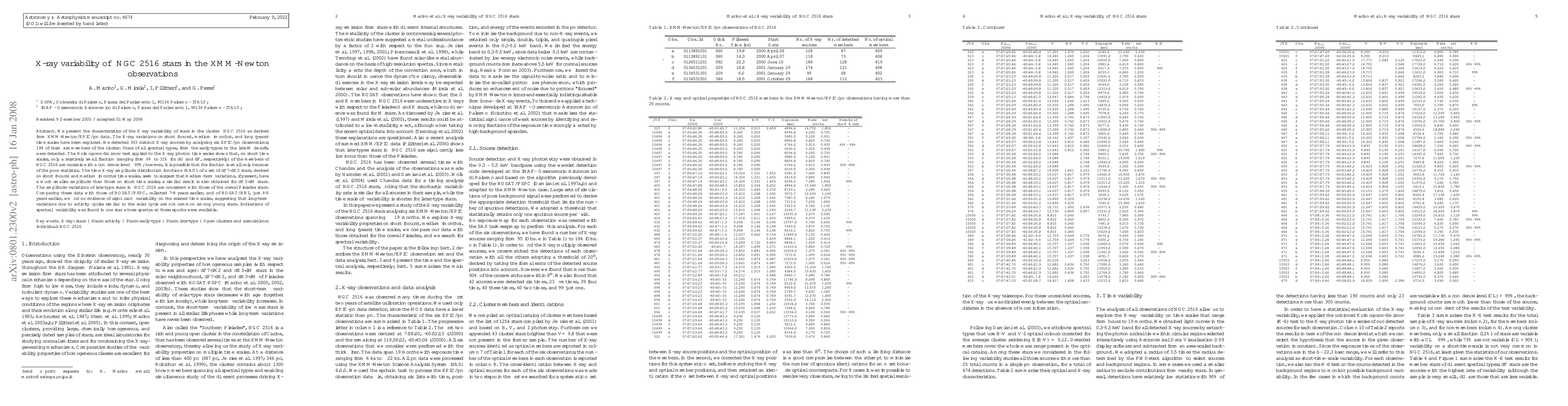 We present the characteristics of the X-ray variability of stars in the cluster NGC2516 as derived from XMM-Newton/EPIC/pn data. The X-ray variations on short (hours), medium (months), and long (years) time scales have been explored. We detected 303 distinct X-ray sources by analysing six EPIC/pn observations; 194 of them are members of the cluster. Stars of all spectral types, from the early-types to the late-M dwarfs, were detected. The Kolmogorov-Smirnov test applied to the X-ray photon time series shows that, on short time scales, only a relatively small fraction (ranging from 6% to 31% for dG and dF, respectively) of the members of NGC2516 are variable with a confidence level $\geq$99%; however, it is possible that the fraction is small only because of the poor statistics. The time X-ray amplitude distribution functions (XAD) of a set of dF7-dK2 stars, derived on short (hours) and medium (months) time scales, seem to suggest that medium-term variations, if present, have a much smaller amplitude than those on short time scales; a similar result is also obtained for dK3-dM stars. The amplitude variations of late-type stars in NGC2516 are consistent with those of the coeval Pleiades stars. Comparing these data with those of ROSAT/PSPC, collected 7-8 years earlier, and of ROSAT/HRI, just 4-5 years earlier, we find no evidence of significant variability on the related time scales, suggesting that long-term variations due to activity cycles similar to the solar cycle are not common among young stars. Indications of spectral variability was found in one star whose spectra at three epochs were available.