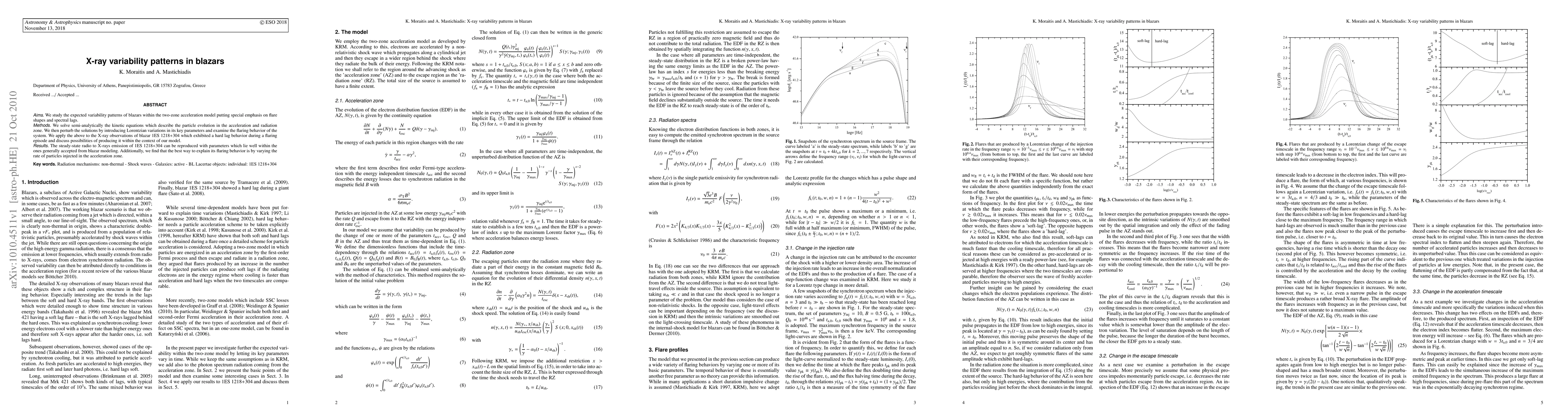 Researchers study X-ray variability patterns in blazars using a two-zone acceleration model and find that varying particle injection rates can explain flaring behavior, reproducing steady-state emission parameters within accepted ranges.