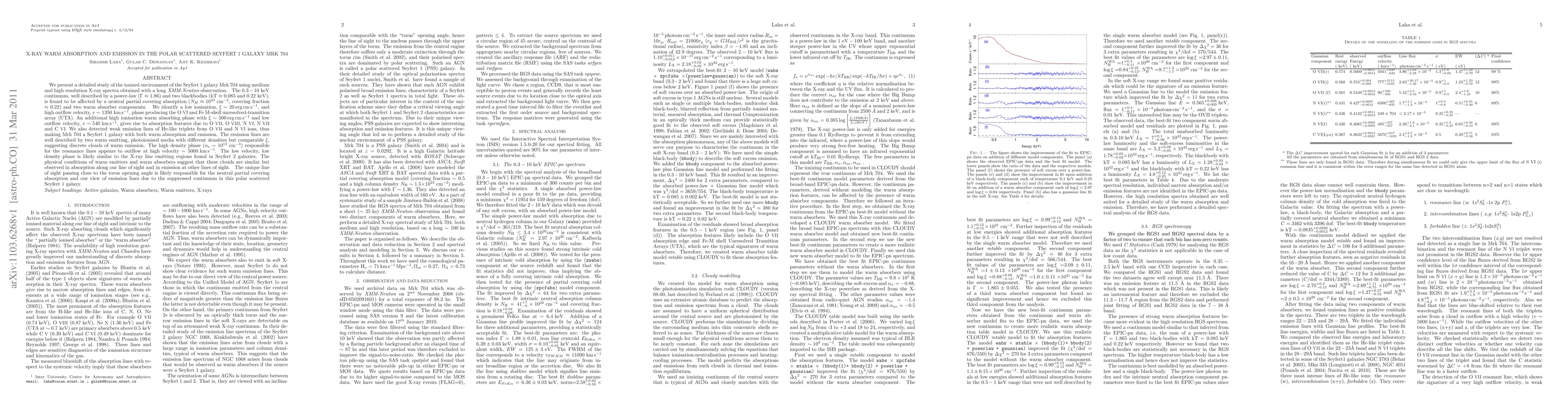 The research examines Mrk 704, a Seyfert 1 galaxy, using high-resolution X-ray spectra from XMM-Newton. It identifies two warm absorber phases with distinct ionization and outflow velocities, responsible for OVI, Fe UTA, OVII, OVIII, NVI, NVII, and CVI absorption features. The study also detects He-like triplet emission lines from OVII and NVI, suggesting discrete clouds of warm emitting gas. A high-density, high-velocity emitting phase and a low-density, low-velocity phase are found, indicating that absorbing and emitting clouds might be similar but viewed differently based on the observer's line of sight. The unique line of sight close to the torus opening angle explains the neutral partial covering absorption and the observed emission lines in this polar-scattered Seyfert 1 galaxy.