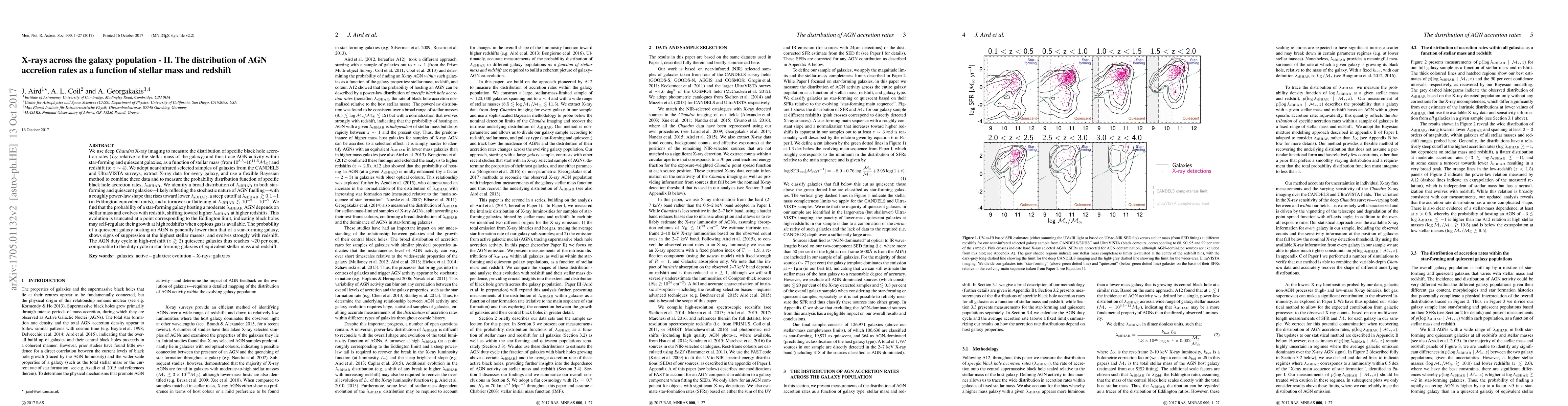 This study maps the distribution of active galactic nuclei (AGN) accretion rates across galaxies with varying stellar masses and redshifts, finding a broad range of accretion rates and a steep cutoff at high levels.