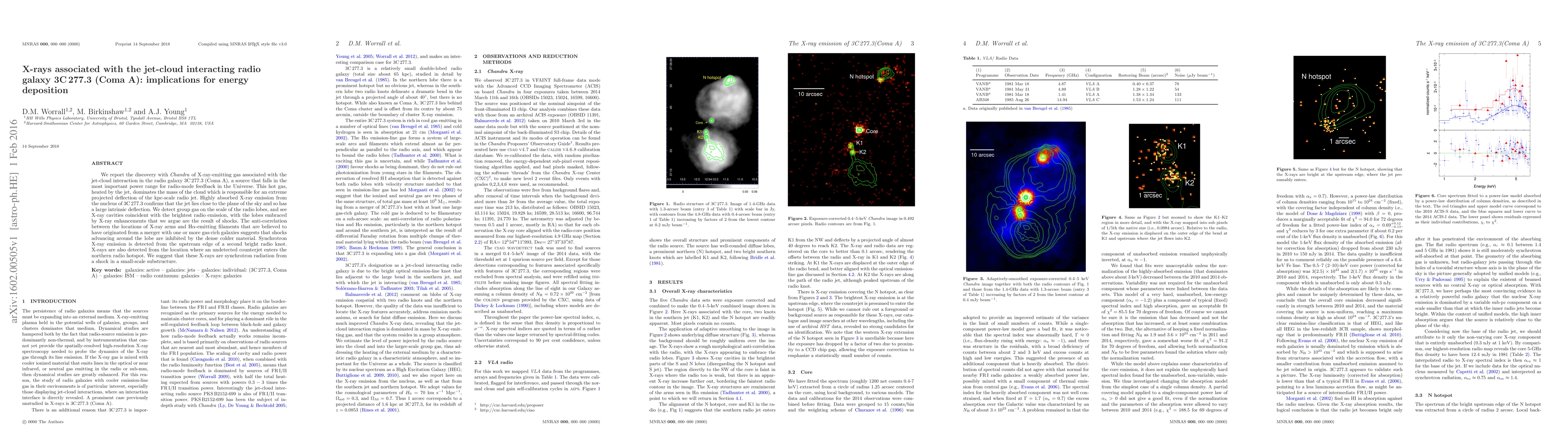We report the discovery with Chandra of X-ray-emitting gas associated with the jet-cloud interaction in the radio galaxy 3C 277.3 (Coma A), a source that falls in the most important power range for radio-mode feedback in the Universe. This hot gas, heated by the jet, dominates the mass of the cloud which is responsible for an extreme projected deflection of the kpc-scale radio jet. Highly absorbed X-ray emission from the nucleus of 3C 277.3 confirms that the jet lies close to the plane of the sky and so has a large intrinsic deflection. We detect group gas on the scale of the radio lobes, and see X-ray cavities coincident with the brightest radio emission, with the lobes embraced by X-ray enhancements that we argue are the result of shocks. The anti-correlation between the locations of X-ray arms and H$\alpha$-emitting filaments that are believed to have originated from a merger with one or more gas-rich galaxies suggests that shocks advancing around the lobe are inhibited by the dense colder material. Synchrotron X-ray emission is detected from the upstream edge of a second bright radio knot. X-rays are also detected from the location where an undetected counterjet enters the northern radio hotspot. We suggest that these X-rays are synchrotron radiation from a shock in a small-scale substructure.