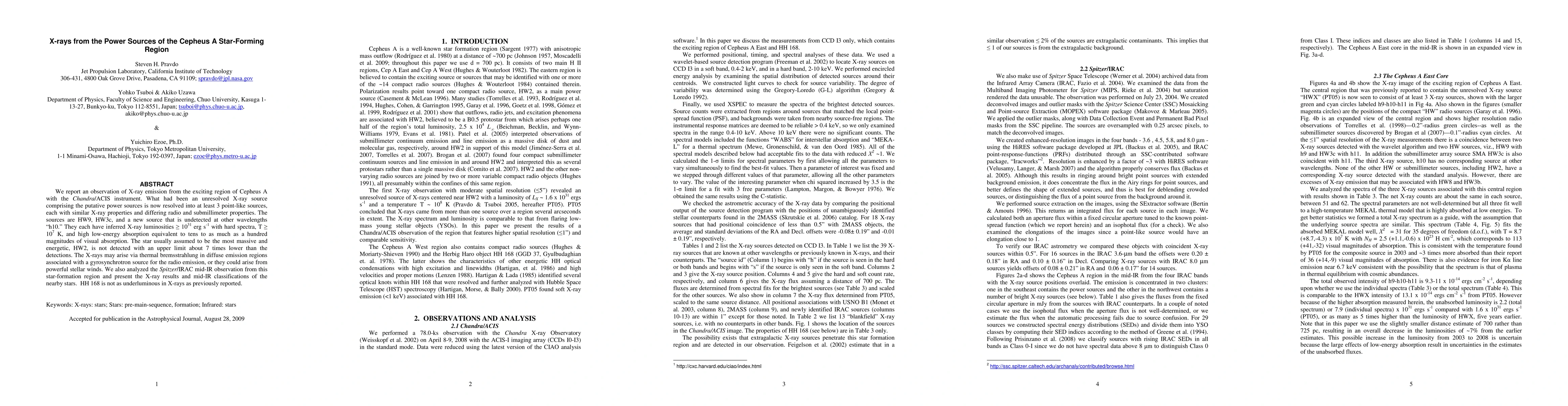 We report an observation of X-ray emission from the exciting region of Cepheus A with the Chandra/ACIS instrument. What had been an unresolved X-ray source comprising the putative power sources is now resolved into at least 3 point-like sources, each with similar X-ray properties and differing radio and submillimeter properties. The sources are HW9, HW3c, and a new source that is undetected at other wavelengths "h10." They each have inferred X-ray luminosities >= 10^31 erg s^-1 with hard spectra, T >= 10^7 K, and high low-energy absorption equivalent to tens to as much as a hundred magnitudes of visual absorption. The star usually assumed to be the most massive and energetic, HW2, is not detected with an upper limit about 7 times lower than the detections. The X-rays may arise via thermal bremsstrahlung in diffuse emission regions associated with a gyrosynchrotron source for the radio emission, or they could arise from powerful stellar winds. We also analyzed the Spitzer/IRAC mid-IR observation from this star-formation region and present the X-ray results and mid-IR classifications of the nearby stars. HH 168 is not as underluminous in X-rays as previously reported.