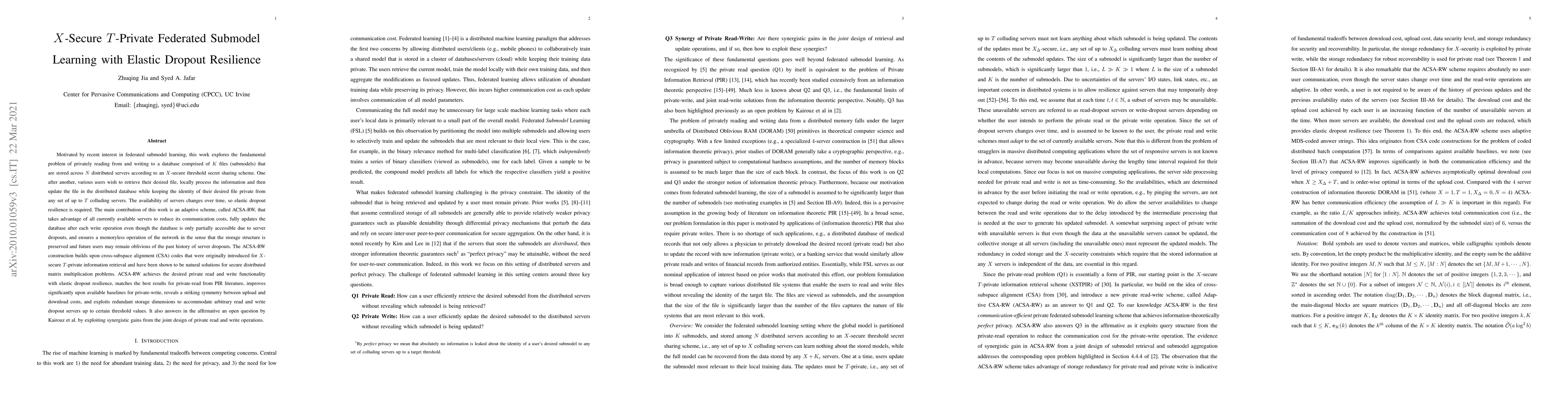 This paper introduces a new approach to private federated submodel learning with elastic dropout resilience, achieving low communication costs while ensuring secure data access and adaptability to changing server availability.