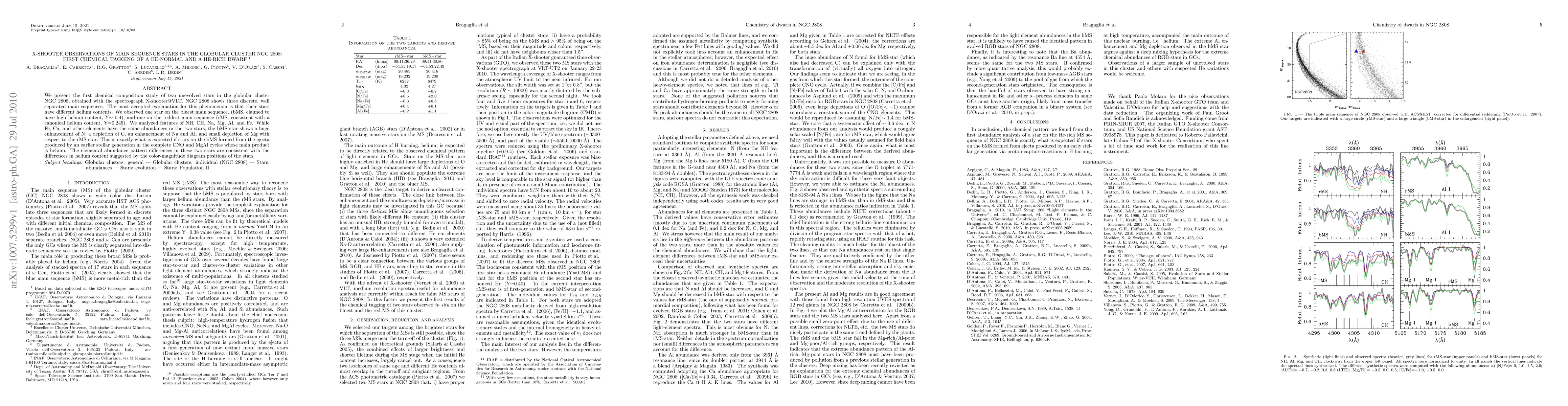 This paper reports the first chemical composition analysis of two main sequence stars in the globular cluster NGC 2808 using the X-shooter spectrograph. The study reveals significant differences in nitrogen, carbon, sodium, aluminum, and magnesium abundances between a helium-rich star on the bluest main sequence and a helium-normal star on the reddest main sequence, supporting the theory that the stars' distinct helium contents are due to different formation processes.