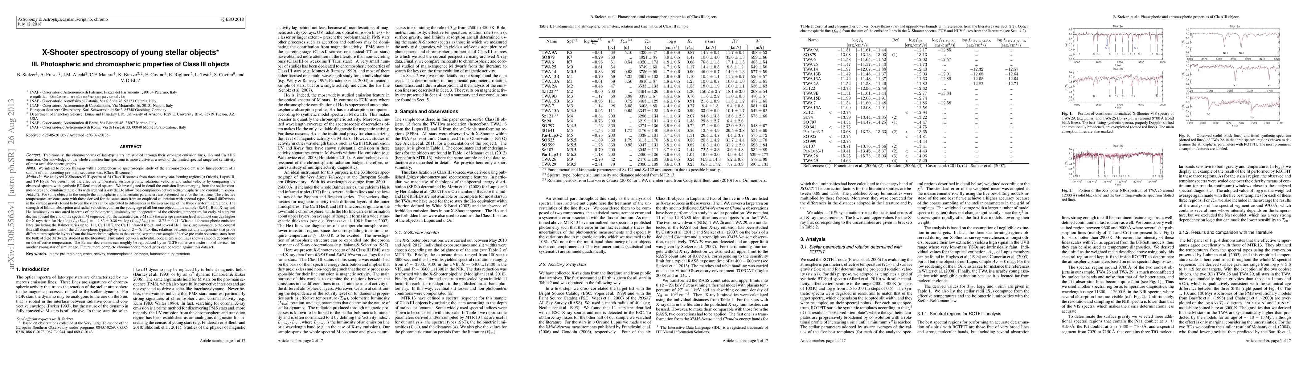 We analyzed X-Shooter/VLT spectra of 24 ClassIII sources from three nearby star-forming regions (sigmaOrionis, LupusIII, and TWHya). We determined the effective temperature, surface gravity, rotational velocity, and radial velocity by comparing the observed spectra with synthetic BT-Settl model spectra. We investigated in detail the emission lines emerging from the stellar chromospheres and combined these data with archival X-ray data to allow for a comparison between chromospheric and coronal emissions. Both X-ray and Halpha luminosity as measured in terms of the bolometric luminosity are independent of the effective temperature for early-M stars but decline toward the end of the spectral M sequence. For the saturated early-M stars the average emission level is almost one dex higher for X-rays than for Halpha: log(L_x/L_bol) = -2.85 +- 0.36 vs. log(L_Halpha/L_bol) = -3.72 +- 0.21. When all chromospheric emission lines (including the Balmer series up to H11, CaII HK, the CaII infrared triplet, and several HeI lines) are summed up the coronal flux still dominates that of the chromosphere, typically by a factor 2-5. Flux-flux relations between activity diagnostics that probe different atmospheric layers (from the lower chromosphere to the corona) separate our sample of active pre-main sequence stars from the bulk of field M dwarfs studied in the literature. Flux ratios between individual optical emission lines show a smooth dependence on the effective temperature. The Balmer decrements can roughly be reproduced by an NLTE radiative transfer model devised for another young star of similar age. Future, more complete chromospheric model grids can be tested against this data set.