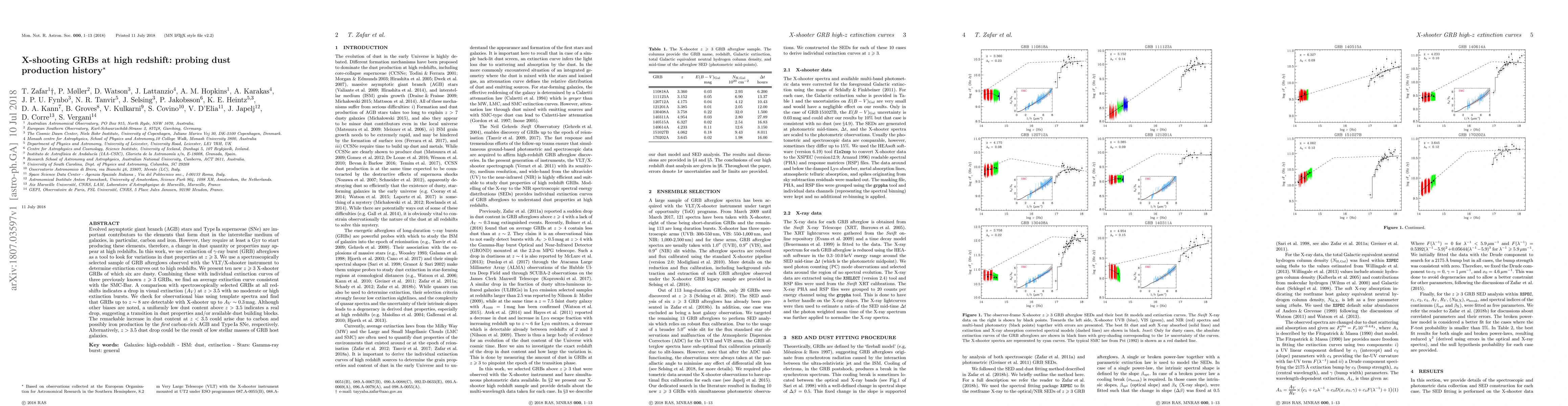 The paper presents detailed extinction curve analysis of high-redshift GRB afterglows using X-shooter, providing new insights into the dust properties and evolution in the early universe.