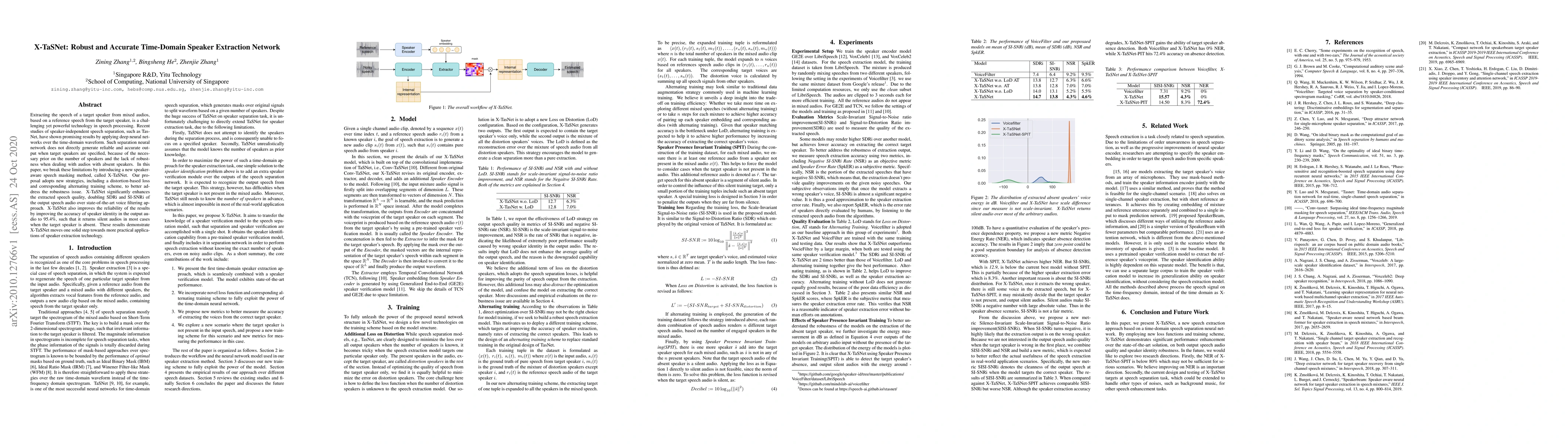 Extracting the speech of a target speaker from mixed audios, based on a reference speech from the target speaker, is a challenging yet powerful technology in speech processing. Recent studies of speaker-independent speech separation, such as TasNet, have shown promising results by applying deep neural networks over the time-domain waveform. Such separation neural network does not directly generate reliable and accurate output when target speakers are specified, because of the necessary prior on the number of speakers and the lack of robustness when dealing with audios with absent speakers. In this paper, we break these limitations by introducing a new speaker-aware speech masking method, called X-TaSNet. Our proposal adopts new strategies, including a distortion-based loss and corresponding alternating training scheme, to better address the robustness issue. X-TaSNet significantly enhances the extracted speech quality, doubling SDRi and SI-SNRi of the output speech audio over state-of-the-art voice filtering approach. X-TaSNet also improves the reliability of the results by improving the accuracy of speaker identity in the output audio to 95.4%, such that it returns silent audios in most cases when the target speaker is absent. These results demonstrate X-TaSNet moves one solid step towards more practical applications of speaker extraction technology.