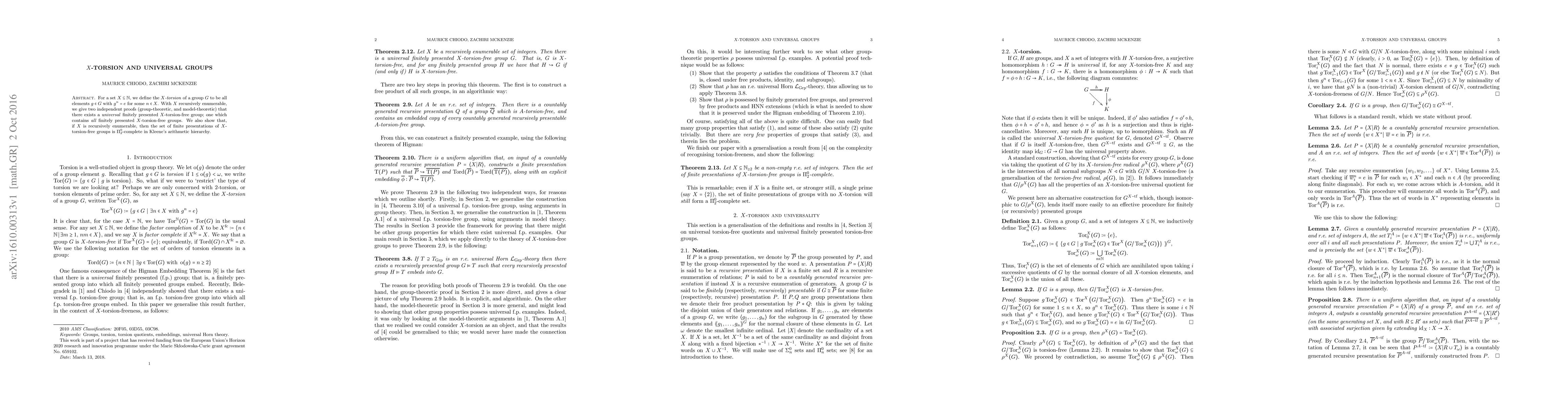 For a set $X\subseteq \mathbb{N}$, we define the $X$-torsion of a group $G$ to be all elements $g\in G$ with $g^{n}=e$ for some $n\in X$. With $X$ recursively enumerable, we give two independent proofs (group-theoretic, and model-theoretic) that there exists a universal finitely presented $X$-torsion-free group; one which contains all finitely presented $X$-torsion-free groups. We also show that, if $X$ is recursively enumerable, then the set of finite presentations of $X$-torsion-free groups is $\Pi_{2}^{0}$-complete in Kleene's arithmetic hierarchy.