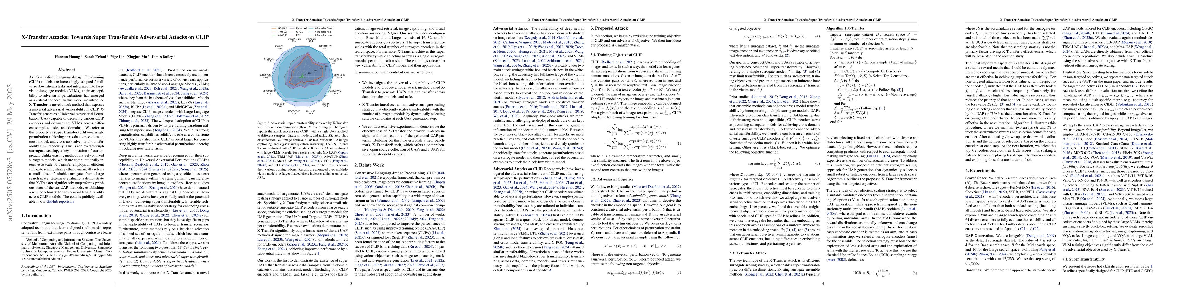 Researchers introduced X-Transfer, a method that exploits adversarial vulnerabilities in CLIP models, achieving cross-data, cross-domain, and cross-task transferability with improved performance over existing UAP methods.