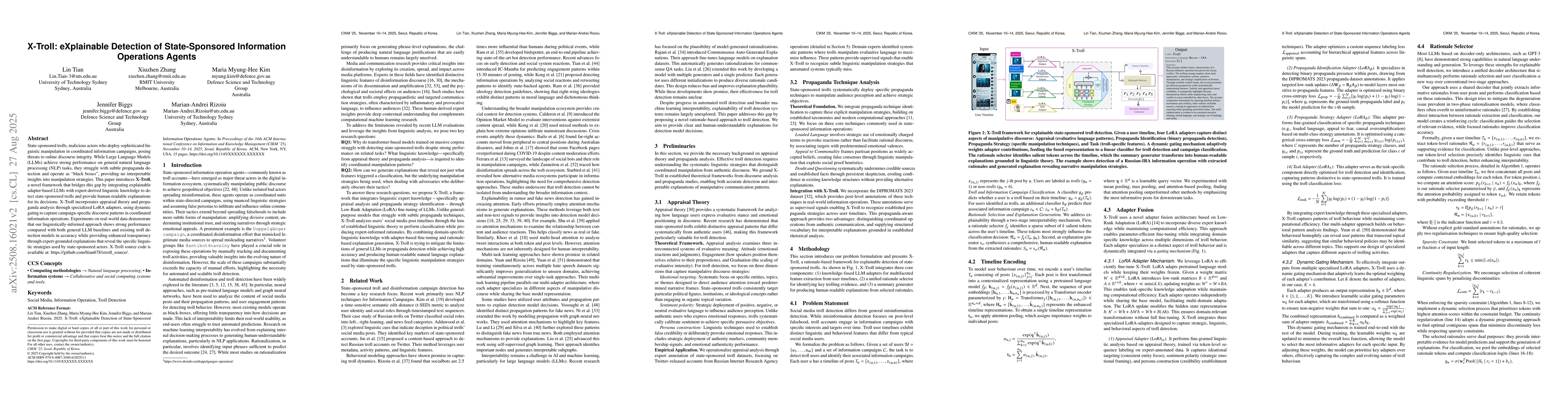 State-sponsored trolls, malicious actors who deploy sophisticated linguistic manipulation in coordinated information campaigns, posing threats to online discourse integrity. While Large Language Models (LLMs) achieve strong performance on general natural language processing (NLP) tasks, they struggle with subtle propaganda detection and operate as ``black boxes'', providing no interpretable insights into manipulation strategies. This paper introduces X-Troll, a novel framework that bridges this gap by integrating explainable adapter-based LLMs with expert-derived linguistic knowledge to detect state-sponsored trolls and provide human-readable explanations for its decisions. X-Troll incorporates appraisal theory and propaganda analysis through specialized LoRA adapters, using dynamic gating to capture campaign-specific discourse patterns in coordinated information operations. Experiments on real-world data demonstrate that our linguistically-informed approach shows strong performance compared with both general LLM baselines and existing troll detection models in accuracy while providing enhanced transparency through expert-grounded explanations that reveal the specific linguistic strategies used by state-sponsored actors. X-Troll source code is available at: https://github.com/ltian678/xtroll_source/.