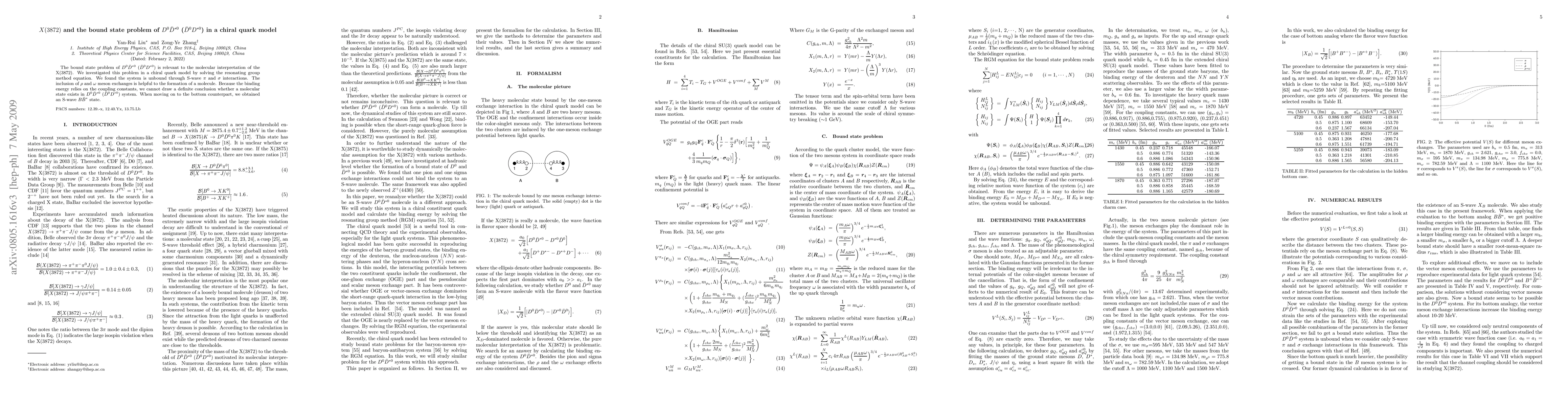 Researchers investigated the bound state problem of $D^0ar{D}^{ ext{}}$ in a chiral quark model, finding that the system is unbound through certain interactions but may form a molecule with added meson exchanges. The study's results are inconclusive due to the reliance on coupling constants.