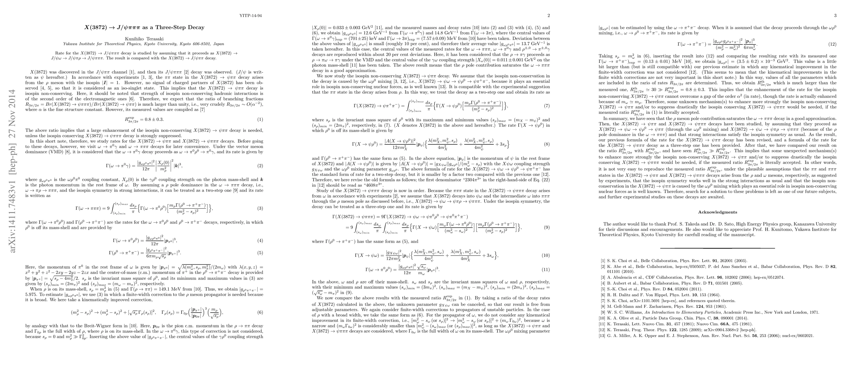 This paper investigates the decay rate of X(3872) into J/psi pi pi pi via a three-step process: X(3872) → J/psi ω → J/psi πρ → J/psi πππ, and compares it with the simpler X(3872) → J/psi ππ decay.
