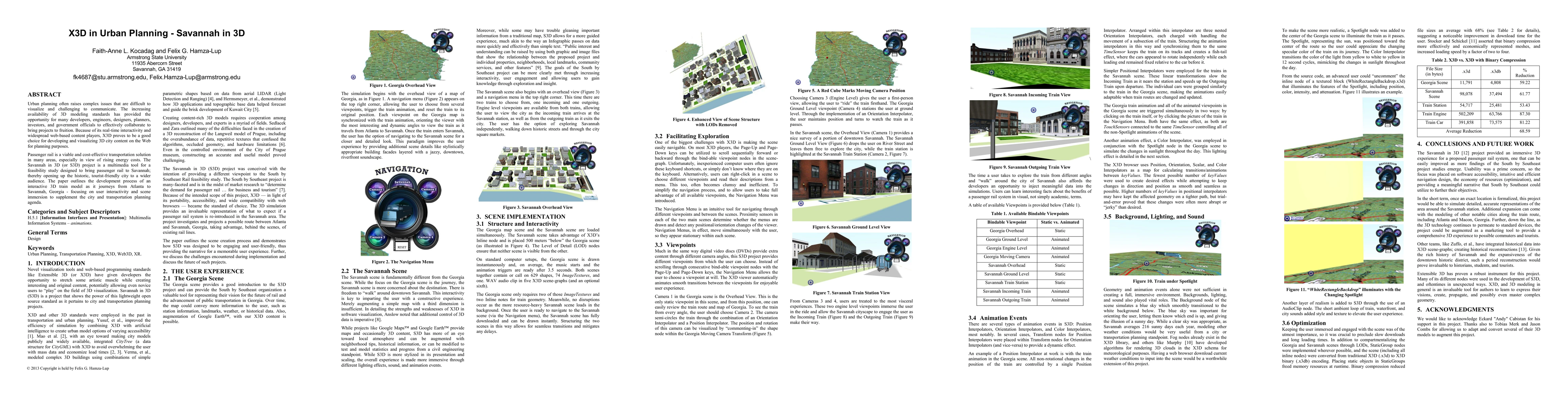 Urban planning often raises complex issues that are difficult to visualize and challenging to communicate. The increasing availability of 3D modeling standards has provided the opportunity for many developers, engineers, designers, planners, investors, and government officials to effectively collaborate to bring projects to fruition. Because of its real-time interactivity and widespread web-based content players, X3D proves to be a good choice for developing and visualizing 3D city content on the Web for planning purposes. Passenger rail is a viable and cost-effective transportation solution in many areas, especially in view of rising energy costs. The Savannah in 3D (or S3D) project is a multimedia tool for a feasibility study designed to bring passenger rail to Savannah; thereby opening up the historic, tourist-friendly city to a wider audience. The paper outlines the development process of an interactive 3D train model as it journeys from Atlanta to Savannah, Georgia - focusing on user interactivity and scene immersion to supplement the city and transportation planning agenda.
