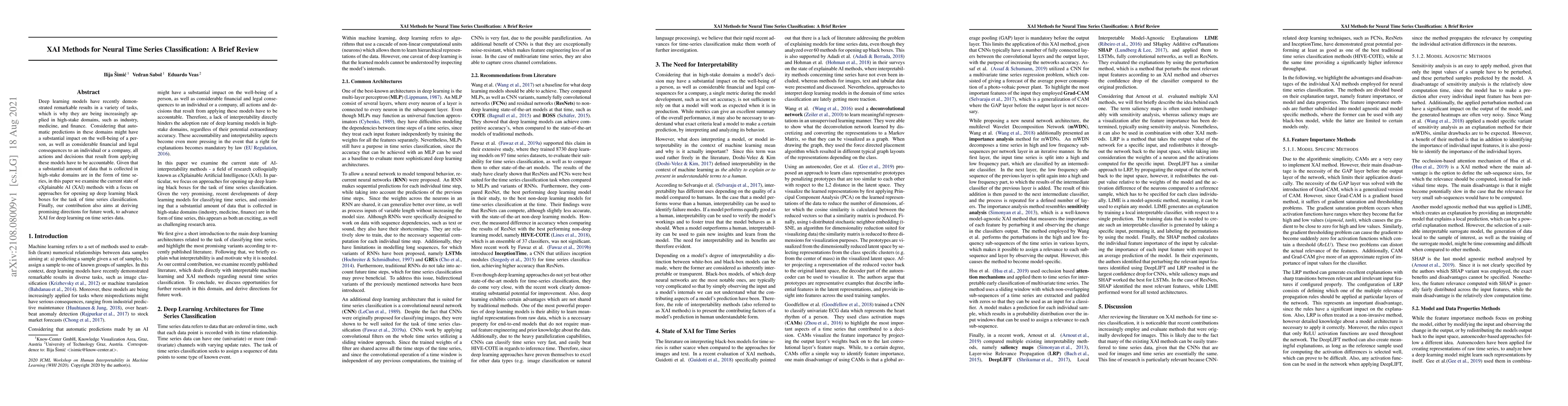 Deep learning models have recently demonstrated remarkable results in a variety of tasks, which is why they are being increasingly applied in high-stake domains, such as industry, medicine, and finance. Considering that automatic predictions in these domains might have a substantial impact on the well-being of a person, as well as considerable financial and legal consequences to an individual or a company, all actions and decisions that result from applying these models have to be accountable. Given that a substantial amount of data that is collected in high-stake domains are in the form of time series, in this paper we examine the current state of eXplainable AI (XAI) methods with a focus on approaches for opening up deep learning black boxes for the task of time series classification. Finally, our contribution also aims at deriving promising directions for future work, to advance XAI for deep learning on time series data.