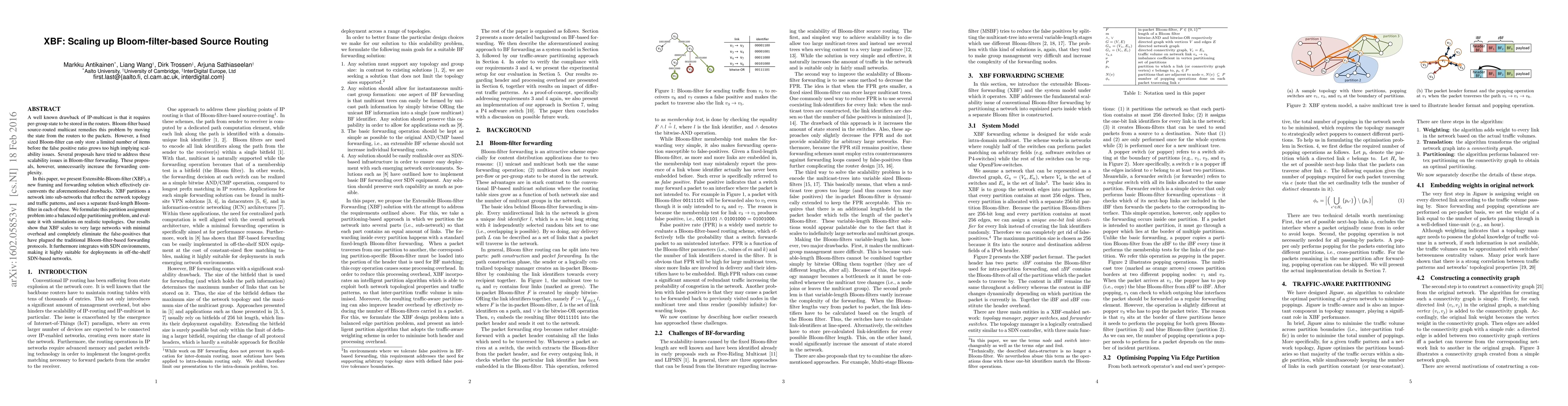 A well known drawback of IP-multicast is that it requires per-group state to be stored in the routers. Bloom-filter based source-routed multicast remedies this problem by moving the state from the routers to the packets. However, a fixed sized Bloom-filter can only store a limited number of items before the false positive ratio grows too high implying scalability issues. Several proposals have tried to address these scalability issues in Bloom-filter forwarding. These proposals, however, unnecessarily increase the forwarding complexity. In this paper, we present Extensible-Bloom-filter (XBF), a new framing and forwarding solution which effectively circumvents the aforementioned drawbacks. XBF partitions a network into sub-networks that reflect the network topology and traffic patterns, and uses a separate fixed-length Bloom-filter in each of these. We formulate this partition assignment problem into a balanced edge partitioning problem, and evaluate it with simulations on realistic topologies. Our results show that XBF scales to very large networks with minimal overhead and completely eliminates the false-positives that have plagued the traditional Bloom-filter-based forwarding protocols. It furthermore integrates with SDN environments, making it highly suitable for deployments in off-the-shelf SDN-based networks.