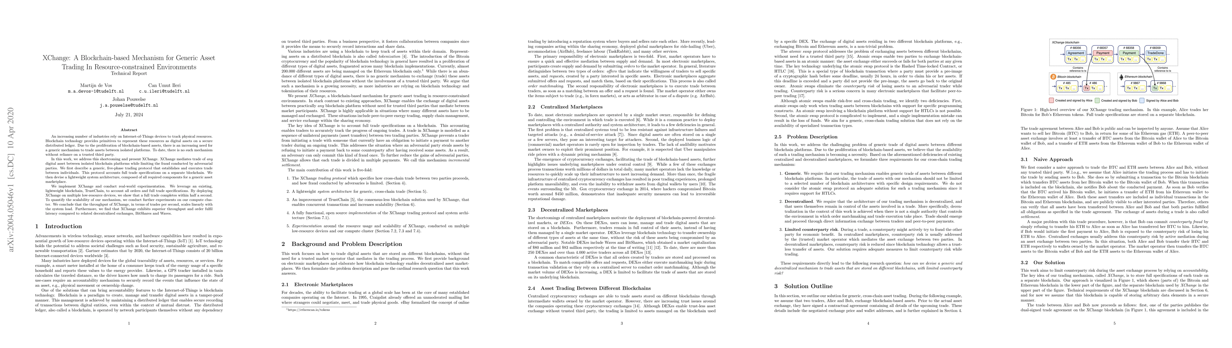 XChange introduces a blockchain-based mechanism for trading digital assets across isolated blockchain platforms without a trusted third party, featuring a five-phase trading protocol and a lightweight system architecture. Experiments show XChange achieves high throughput and low latency, outperforming existing decentralized exchanges.