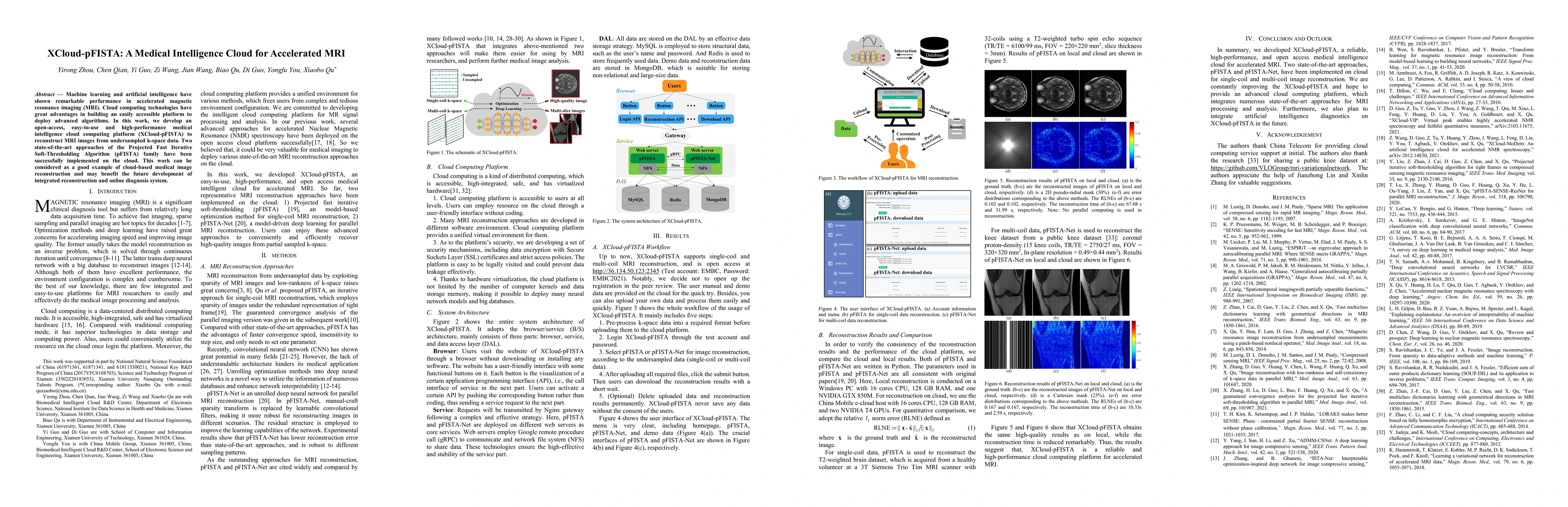 XCloud-pFISTA is a cloud-based platform for reconstructing MRI images using advanced machine learning algorithms. It implements two state-of-the-art pFISTA approaches to accelerate MRI reconstruction from undersampled data, offering an accessible and high-performance solution for medical imaging.