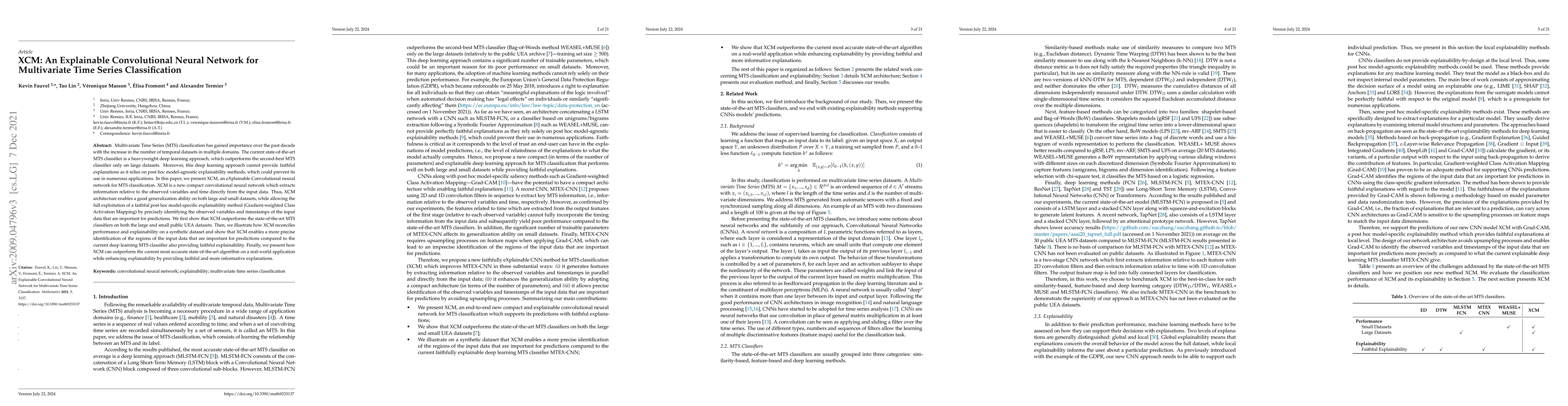 This paper introduces XCM, an explainable convolutional neural network for multivariate time series classification, which combines high performance with faithful explainability using Gradient-weighted Class Activation Mapping. XCM outperforms existing state-of-the-art classifiers on both large and small datasets while providing precise identification of important input variables and timestamps.