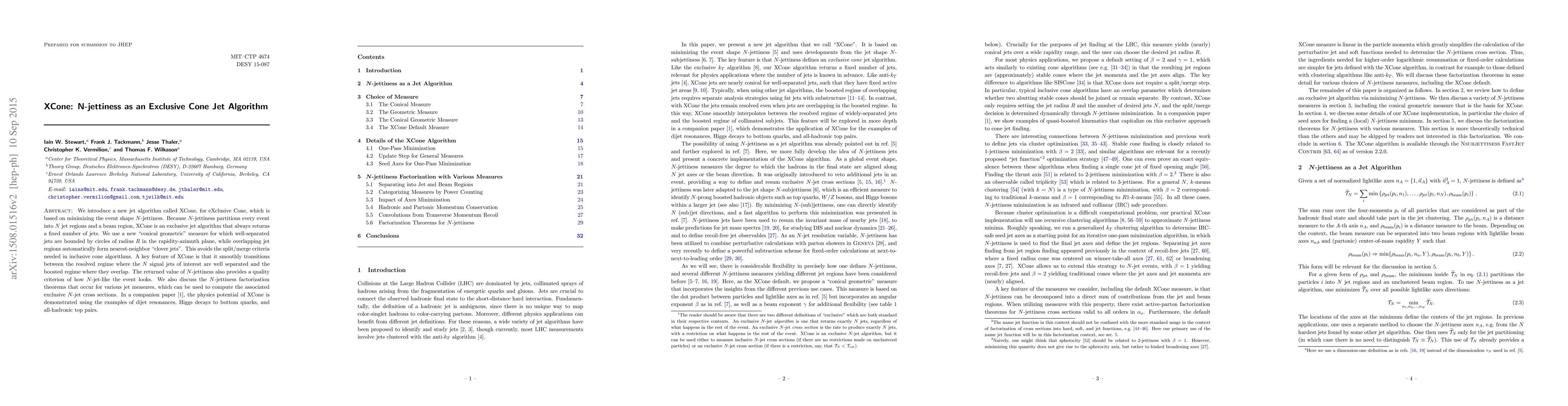 The XCone algorithm introduces an exclusive cone jet method based on minimizing N-jettiness, allowing for a fixed number of jets and transitioning smoothly between resolved and boosted regimes. It uses a conical geometric measure to form "clover jets" for overlapping regions, avoiding split/merge criteria.