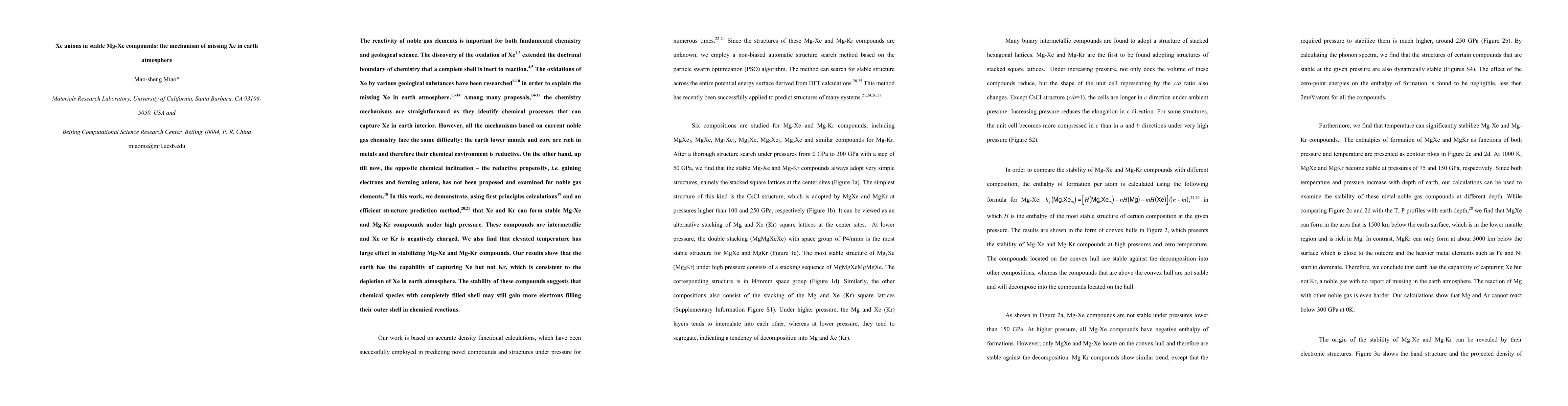 The reactivity of noble gas elements is important for both fundamental chemistry and geological science. The discovery of the oxidation of Xe extended the doctrinal boundary of chemistry that a complete shell is inert to reaction. The oxidations of Xe by various geological substances have been researched in order to explain the missing Xe in earth atmosphere. Among many proposals, the chemistry mechanisms are straightforward as they identify chemical processes that can capture Xe in earth interior. However, all the mechanisms based on current noble gas chemistry face the same difficulty: the earth lower mantle and core are rich in metals and therefore their chemical environment is reductive. On the other hand, up till now, the opposite chemical inclination, the reductive propensity, i.e. gaining electrons and forming anions, has not been proposed and examined for noble gas elements. In this work, we demonstrate, using first principles calculations and an efficient structure prediction method, that Xe and Kr can form stable MgXe and MgKr compounds under high pressure. These compounds are intermetallic and Xe or Kr is negatively charged. We also find that elevated temperature has large effect in stabilizing MgXe and MgKr compounds. Our results show that the earth has the capability of capturing Xe but not Kr, which is consistent to the depletion of Xe in earth atmosphere. The stability of these compounds suggests that chemical species with completely filled shell may still gain more electrons filling their outer shell in chemical reactions.