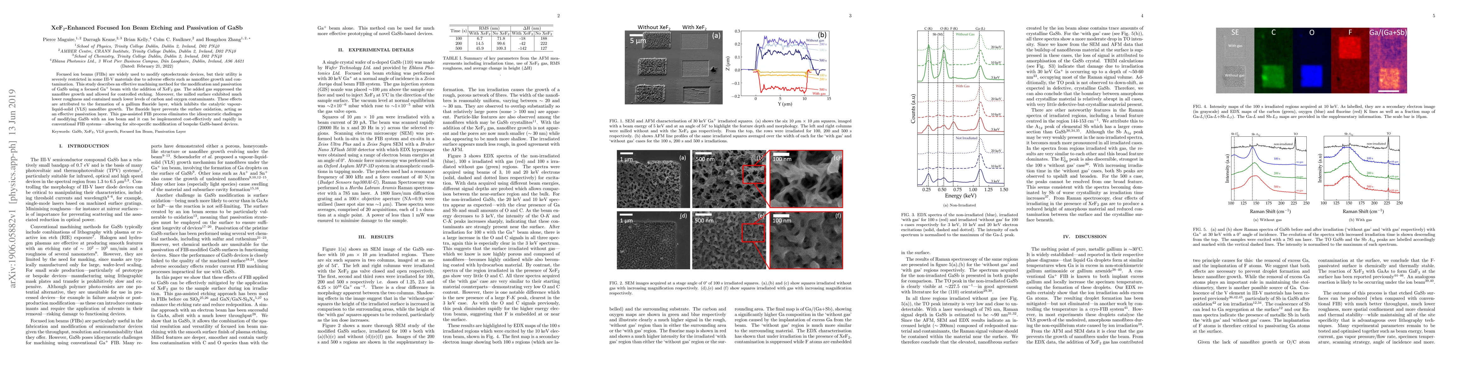 The research presents an effective machining method for GaSb using a focused Ga+ beam with XeF2 gas, which suppresses nanofibre growth and provides controlled etching and passivation.