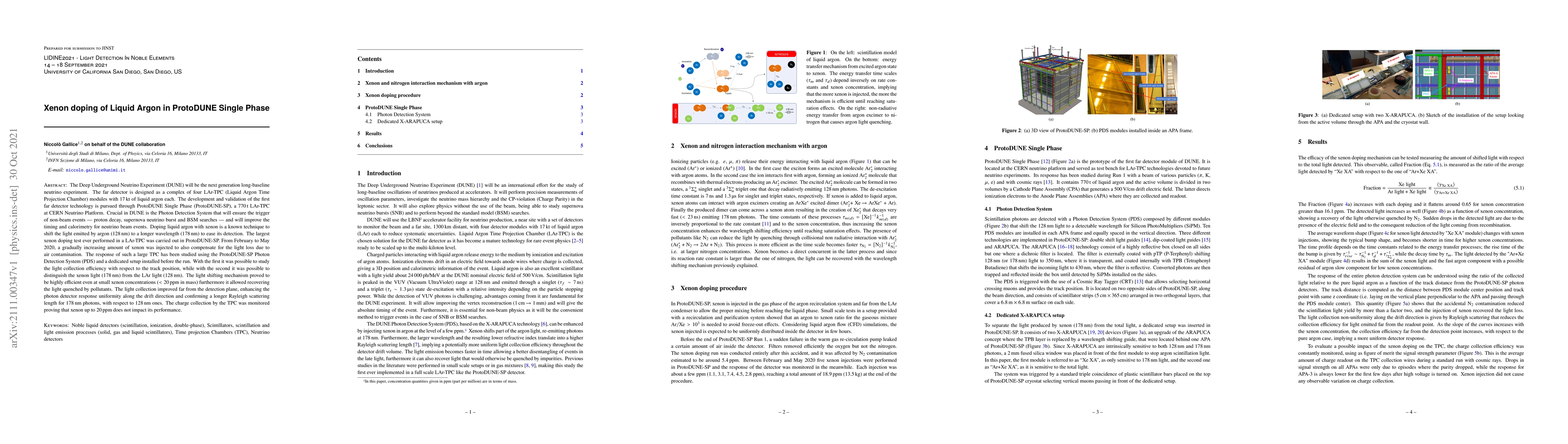 This paper reports on xenon doping in ProtoDUNE-SP to shift the light emission from liquid argon to a longer wavelength, enhancing detection. The test demonstrated efficient light collection and improved photon detector response uniformity, with xenon concentrations up to 20 ppm not affecting the TPC's charge collection.