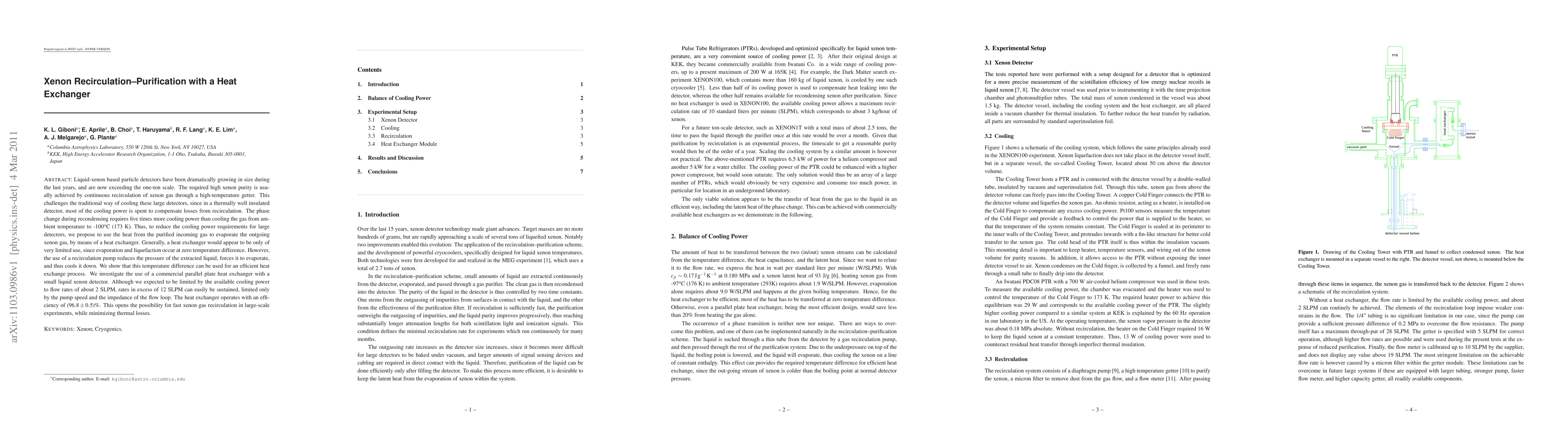 This paper proposes using a heat exchanger to recycle and purify xenon gas in large-scale liquid-xenon detectors, reducing cooling requirements by reusing heat from purified gas to evaporate outgoing gas. The study demonstrates that despite theoretical limitations, the recirculation pump's pressure reduction enables effective heat exchange, achieving flow rates over 12 SLPM with 96.8% efficiency.