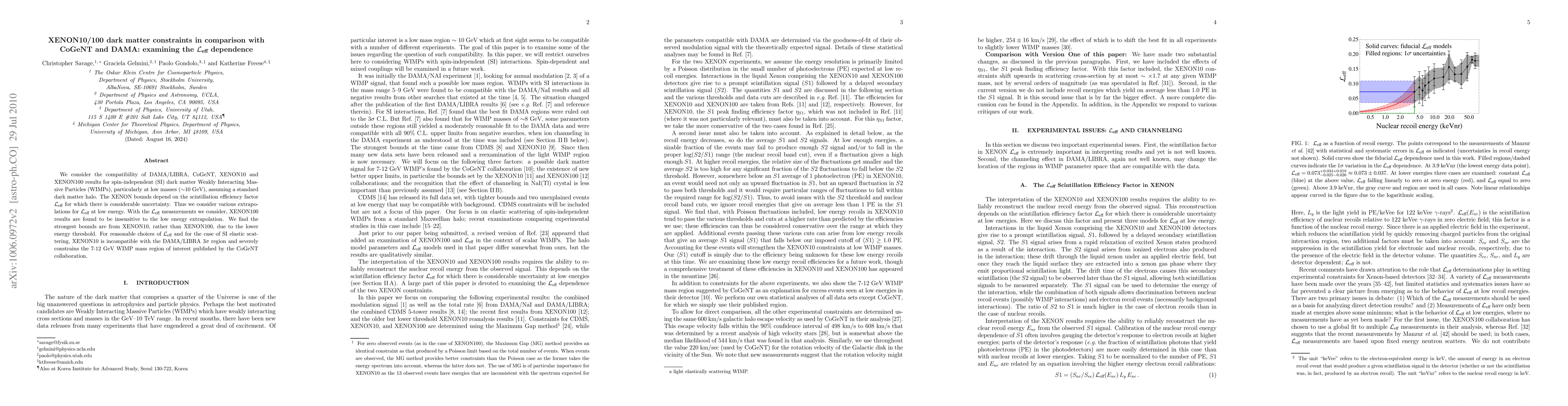 This paper examines the compatibility of dark matter results from DAMA/LIBRA, CoGeNT, and XENON10/100, focusing on spin-independent WIMP interactions at low masses. XENON100's constraints are largely unaffected by uncertainties in the scintillation efficiency factor Leff, while XENON10 provides stronger bounds due to its lower energy threshold, conflicting with DAMA/LIBRA's and CoGeNT's findings.