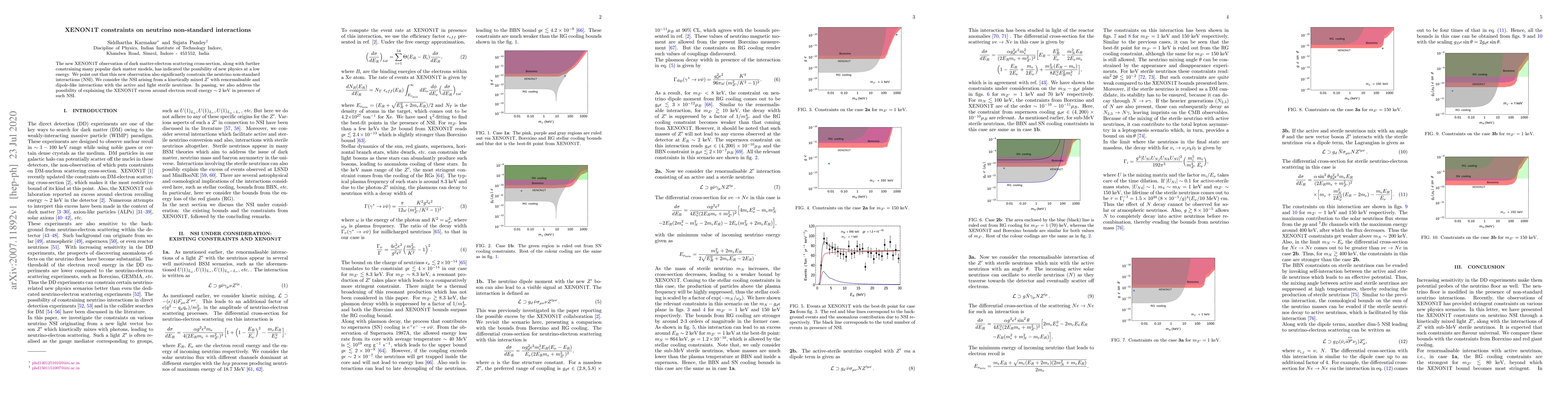 The XENON1T experiment provides new constraints on neutrino non-standard interactions (NSI) through its observation of dark matter-electron scattering, suggesting potential new physics at low energy. This observation also constrains NSI arising from kinetically mixed $Z'$ interactions with active and sterile neutrinos.