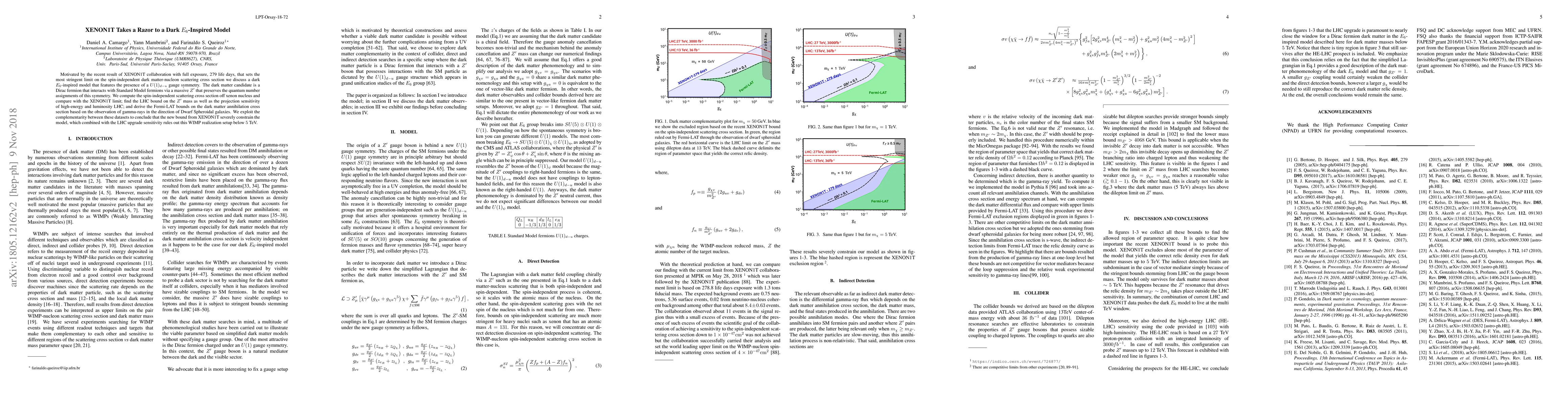 This paper analyzes a dark matter model based on $E_6$ theory with a $U(1)_{d-u}$ gauge symmetry, featuring a Dirac fermion as the dark matter candidate interacting via a massive Z' boson. The study compares the model's predictions with XENON1T, LHC, and Fermi-LAT data, finding that the XENON1T limit severely constrains the model, and combined with LHC upgrade sensitivity, rules out this WIMP realization below 5 TeV.