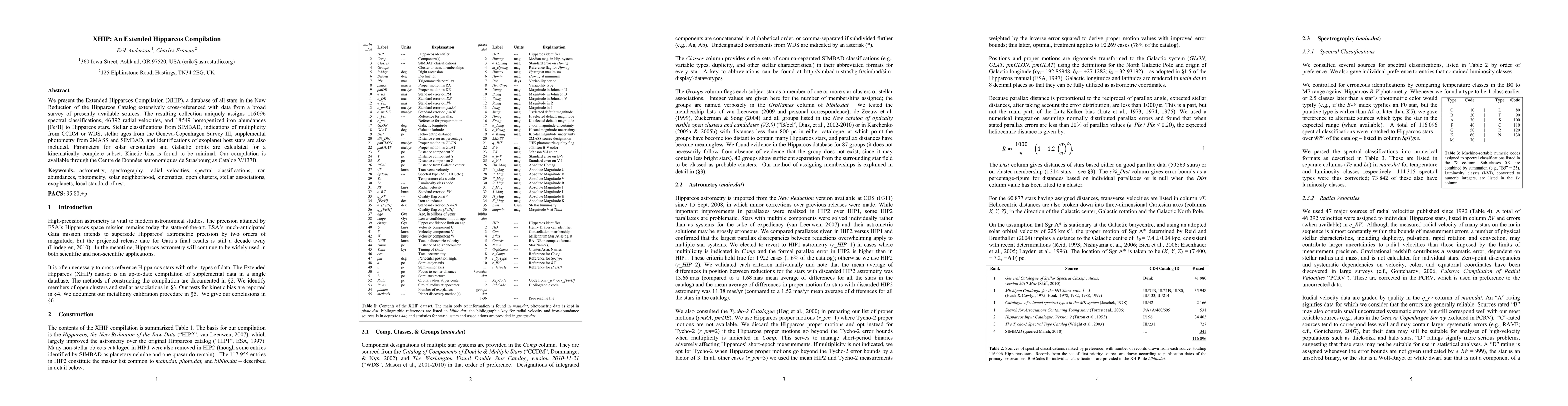 We present the Extended Hipparcos Compilation (XHIP), a database of all stars in the New Reduction of the Hipparcos Catalog extensively cross-referenced with data from a broad survey of presently available sources. The resulting collection uniquely assigns 116,096 spectral classifications, 46,392 radial velocities, and 18,549 homogenized iron abundances [Fe/H] to Hipparcos stars. Stellar classifications from SIMBAD, indications of multiplicity from CCDM or WDS, stellar ages from the Geneva-Copenhagen Survey III, supplemental photometry from 2MASS and SIMBAD, and identifications of exoplanet host stars are also included. Parameters for solar encounters and Galactic orbits are calculated for a kinematically complete subset. Kinetic bias is found to be minimal. Our compilation is available through the Centre de Donn\'ees astronomiques de Strasbourg (CDS) as Catalog V/137B.