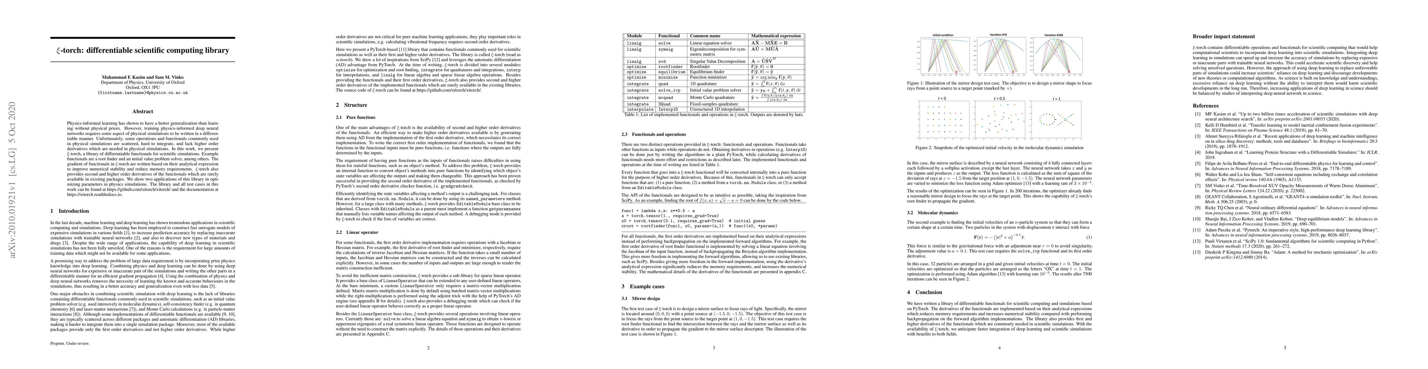 $\xi$-torch is a differentiable scientific computing library designed to facilitate physics-informed learning by providing differentiable functionals for physical simulations. It offers analytical gradients and higher-order derivatives, improving numerical stability and reducing memory usage, and demonstrates applications in optimizing parameters in physics simulations.