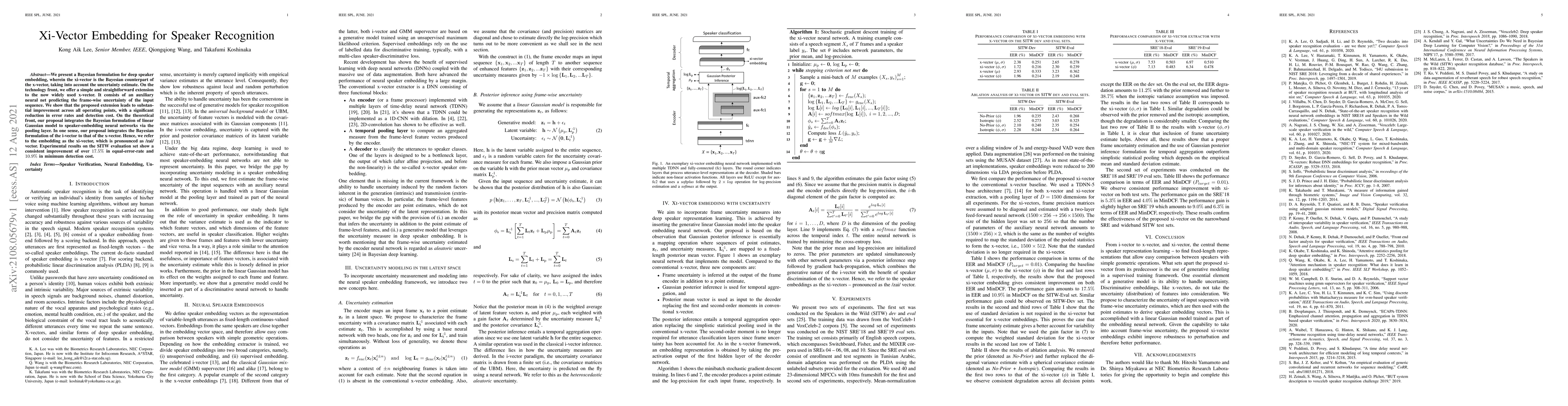 We present a Bayesian formulation for deep speaker embedding, wherein the xi-vector is the Bayesian counterpart of the x-vector, taking into account the uncertainty estimate. On the technology front, we offer a simple and straightforward extension to the now widely used x-vector. It consists of an auxiliary neural net predicting the frame-wise uncertainty of the input sequence. We show that the proposed extension leads to substantial improvement across all operating points, with a significant reduction in error rates and detection cost. On the theoretical front, our proposal integrates the Bayesian formulation of linear Gaussian model to speaker-embedding neural networks via the pooling layer. In one sense, our proposal integrates the Bayesian formulation of the i-vector to that of the x-vector. Hence, we refer to the embedding as the xi-vector, which is pronounced as /zai/ vector. Experimental results on the SITW evaluation set show a consistent improvement of over 17.5% in equal-error-rate and 10.9% in minimum detection cost.