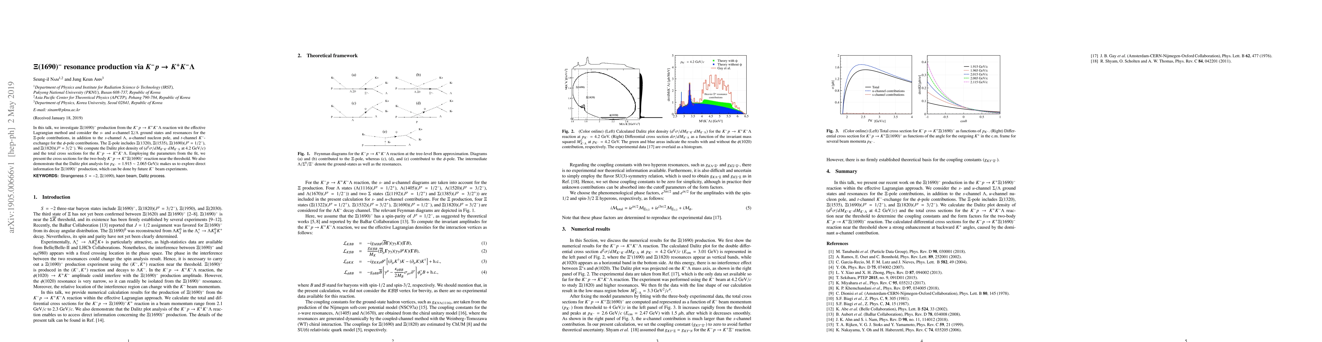 In this talk, we investigate $\Xi(1690)^-$ production from the $K^-p\to K^+K^-\Lambda$ reaction wit the effective Lagrangian method and consider the $s$- and $u$-channel $\Sigma/\Lambda$ ground states and resonances for the $\Xi$-pole contributions, in addition to the $s$-channel $\Lambda$, $u$-channel nucleon pole, and $t$-channel $K^-$-exchange for the $\phi$-pole contributions. The $\Xi$-pole includes $\Xi(1320)$, $\Xi(1535)$, $\Xi(1690)(J^p=1/2^-)$, and $\Xi(1820)(J^p=3/2^-)$. We compute the Dalitz plot density of $(d^2\sigma/dM_{K^+K^-}dM_{K^-\Lambda}$ at 4.2 GeV$/c$) and the total cross sections for the $K^-p\to K^+K^-\Lambda$. Employing the parameters from the fit, we present the cross sections for the two-body $K^-p\to K^+\Xi(1690)^-$ reaction near the threshold. We also demonstrate that the Dalitz plot analysis for $p_{K^-}=1.915 \sim2.065$ GeV/c makes us to explore direct information for $\Xi(1690)^-$ production, which can be done by future $K^-$ beam experiments.