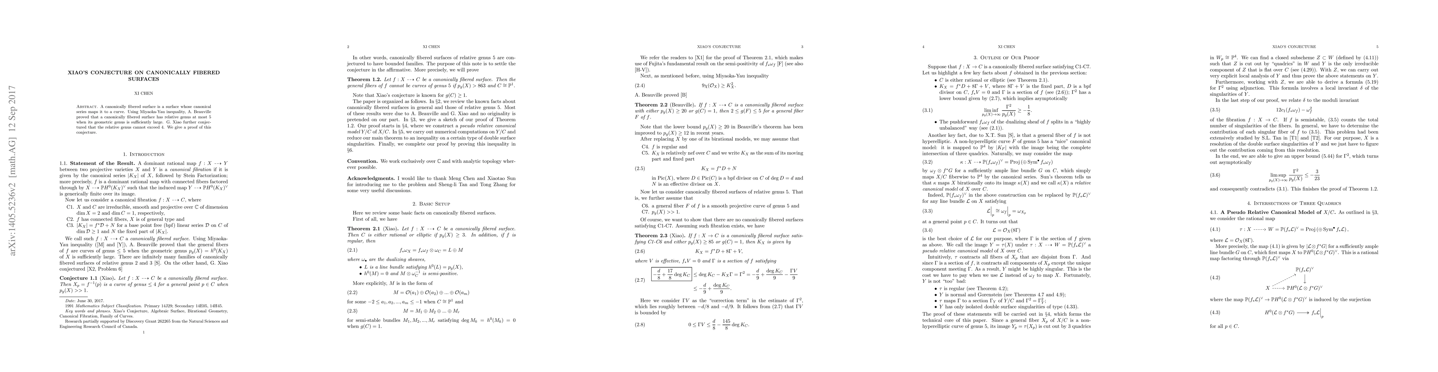 The paper introduces a rigorous proof of Xiao's conjecture, utilizing advanced techniques from algebraic geometry to demonstrate the upper bound on relative genus for canonically fibered surfaces.