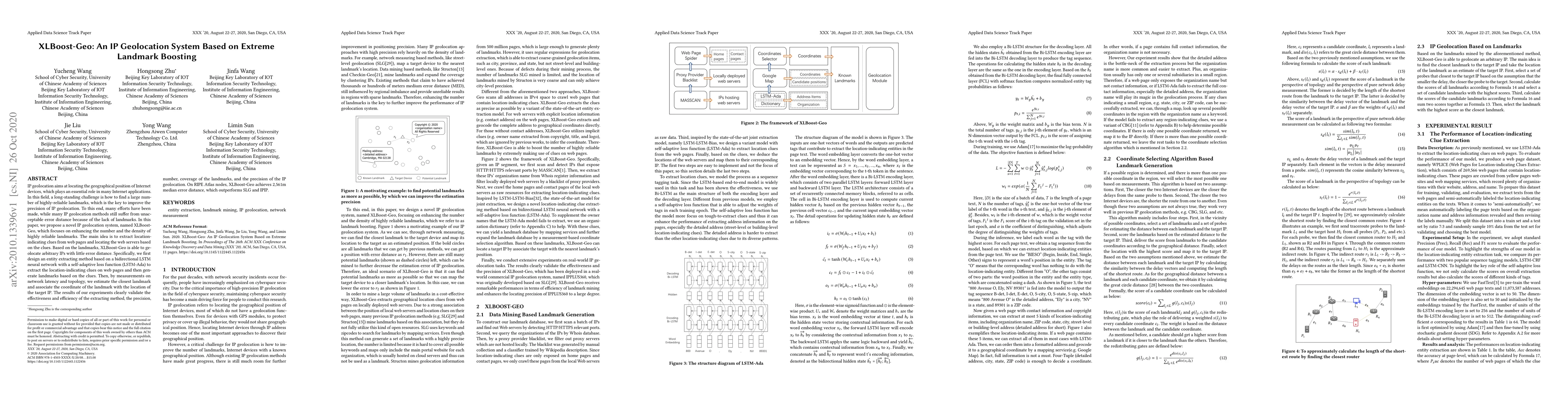 XLBoost-Geo is an advanced IP geolocation system that enhances precision by identifying and utilizing highly reliable landmarks extracted from web pages. It leverages a bidirectional LSTM neural network to extract location-indicating clues and estimates IP locations with minimal error, achieving a median error distance of 2,561m on RIPE Atlas nodes.