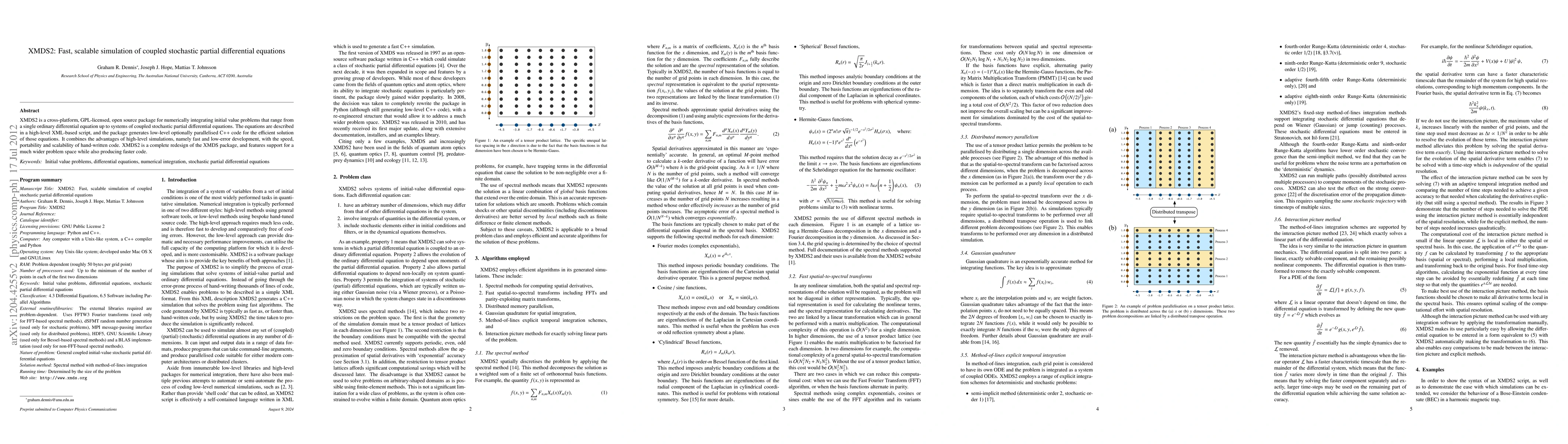 XMDS2 is a fast and scalable simulation tool for solving coupled stochastic partial differential equations, combining high-level development with parallelised C++ code for efficient solutions.