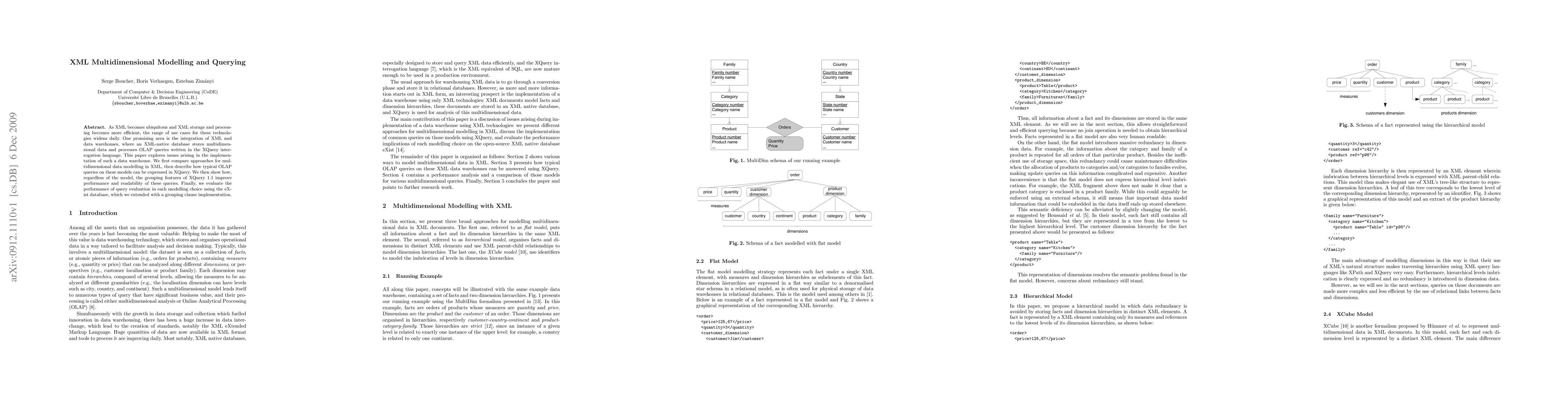 This paper investigates the integration of XML with multidimensional data warehousing, focusing on XML-native databases that store and process multidimensional data using XQuery. It evaluates different multidimensional modelling approaches in XML and demonstrates how XQuery's grouping features enhance query performance and readability.