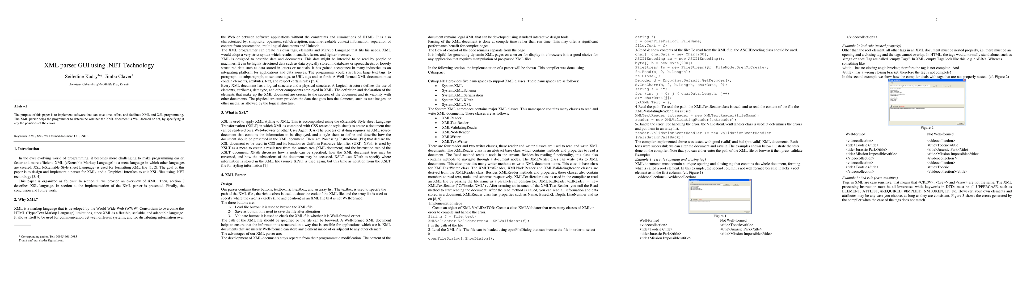 The purpose of this paper is to implement software that can save time, effort, and facilitate XML and XSL programming. The XML parser helps the programmer to determine whether the XML document is Well-formed or not, by specifying if any the positions of the errors.