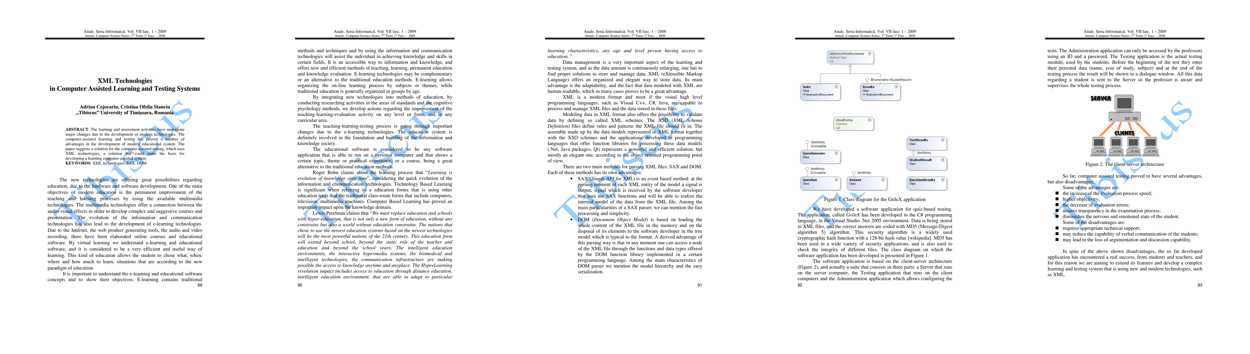 The learning and assessment activities have undergone major changes due to the development of modern technologies. The computer-assisted learning and testing has proven a number of advantages in the development of modern educational system. The paper suggests a solution for the computer-assisted testing, which uses XML technologies, a solution that could make the basis for developing a learning computer-assisted system.