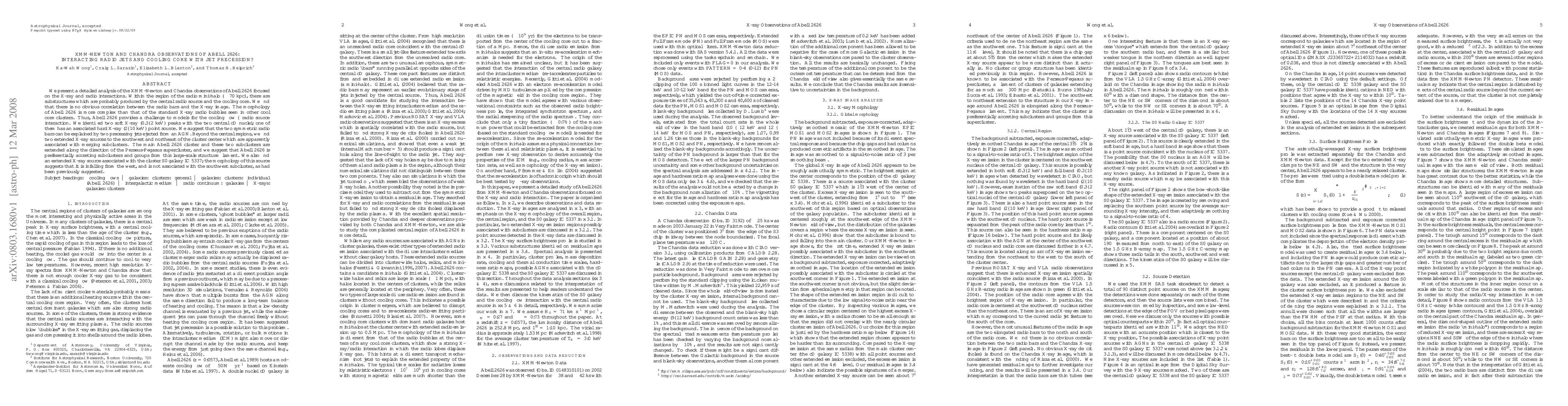 Researchers analyzed XMM-Newton and Chandra observations of Abell 2626 to study its complex interactions between radio jets, a cooling core, and surrounding galaxy clusters.