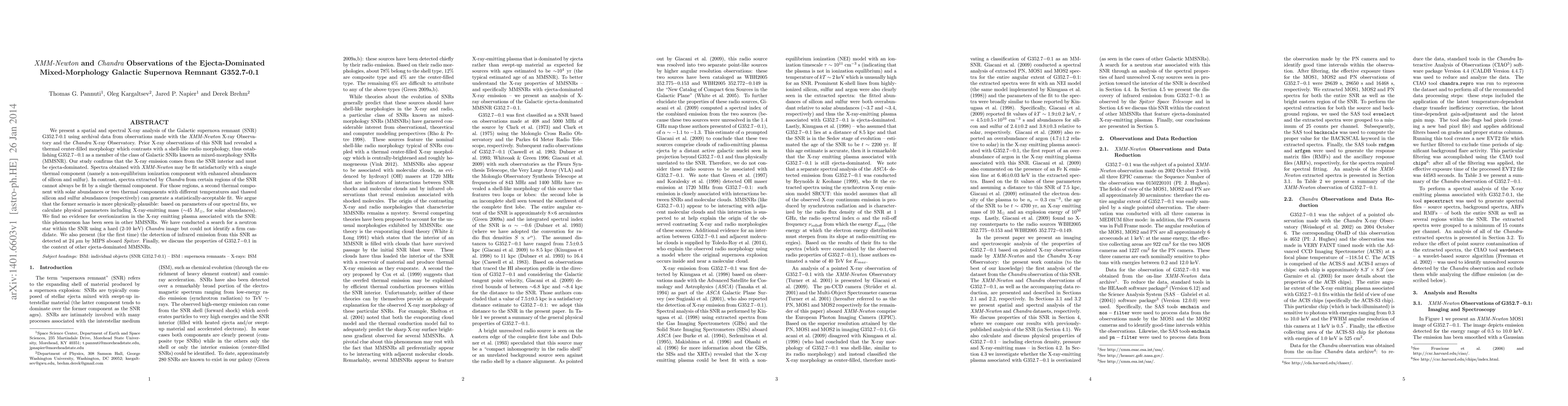 (Abridged) We present a spatial and spectral X-ray analysis of the Galactic supernova remnant (SNR) G352.7-0.1 using archival data from observations made with XMM-Newton and Chandra. Prior X-ray observations of this SNR revealed a thermal center-filled morphology which contrasts with a shell-like radio morphology, thus establishing G352.7$-$0.1 as a mixed-morphology SNR (MMSNRs). Our study confirms that the X-ray emission comes from the SNR interior and must be ejecta-dominated. Spectra obtained with XMM-Newton may be fit satisfactorily with a single thermal component (namely a non-equilibrium ionization component with enhanced abundances of silicon and sulfur). In contrast, spectra extracted by Chandra from certain regions of the SNR cannot always be fit by a single thermal component. For those regions, a second thermal component with solar abundances or two thermal components with different temperatures and thawed silicon and sulfur abundances (respectively) can generate a statistically-acceptable fit. We argue that the former scenario is more physically-plausible: based on parameters of our spectral fits, we calculate physical parameters including X-ray-emitting mass (about 45 solar masses, for solar abundances). We find no evidence for overionization in the X-ray emitting plasma associated with the SNR: this phenomenon has been seen in other MMSNRs. We have conducted a search for a neutron star within the SNR using a hard (2-10 keV) Chandra image but could not identify a firm candidate. We also present (for the first time) the detection of infrared emission from this SNR as detected at 24 micron by MIPS aboard Spitzer. Finally, we discuss the properties of G352.7-0.1 in the context of other ejecta-dominated MMSNRs.
